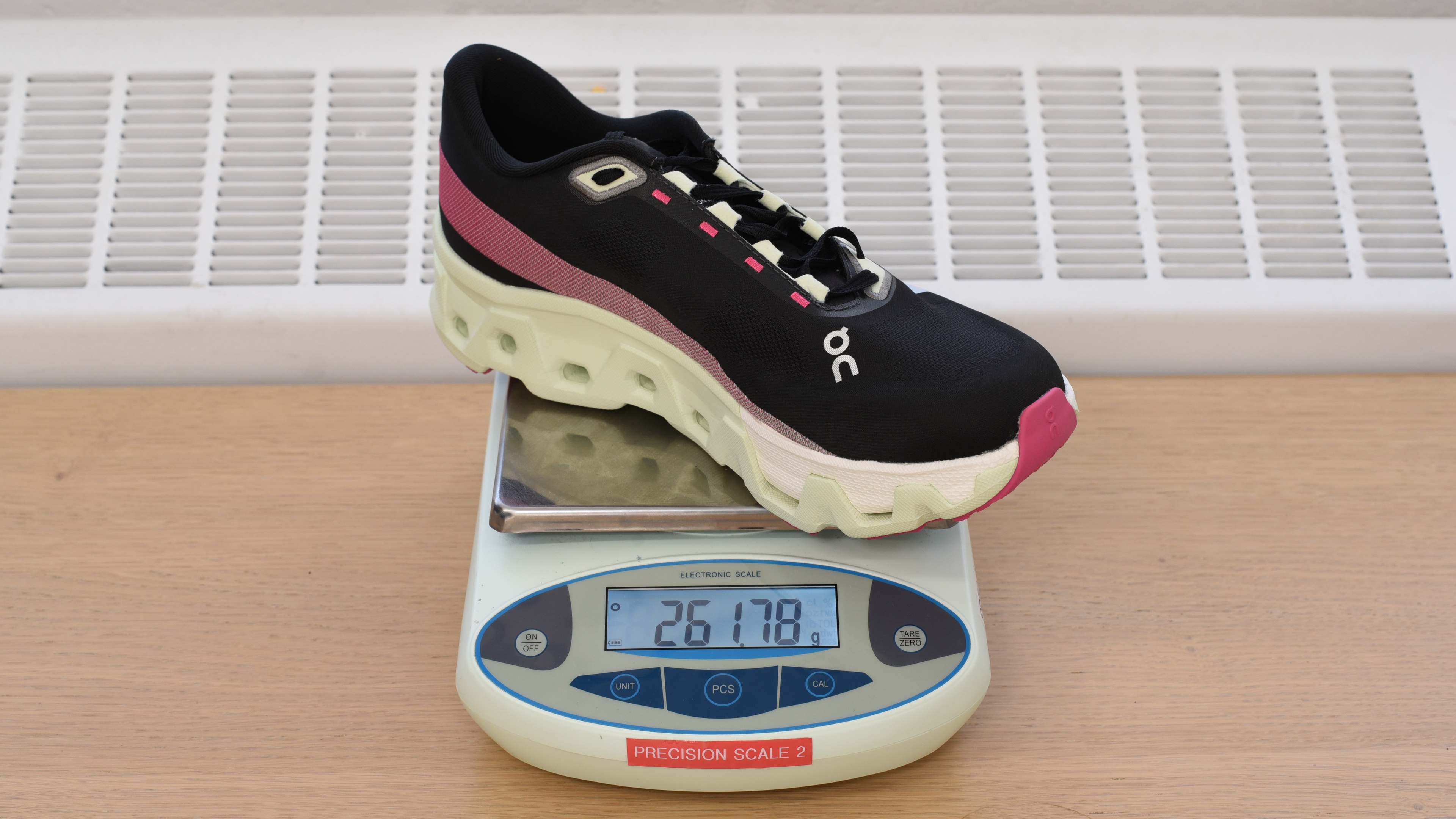 The On Cloudmonster Hyper sits in the middle of the pack for weight, feeling neither featherlight nor clunky. The rear carrier foam adds some heft, but it's still significantly lighter than the standard On Cloudmonster 2.