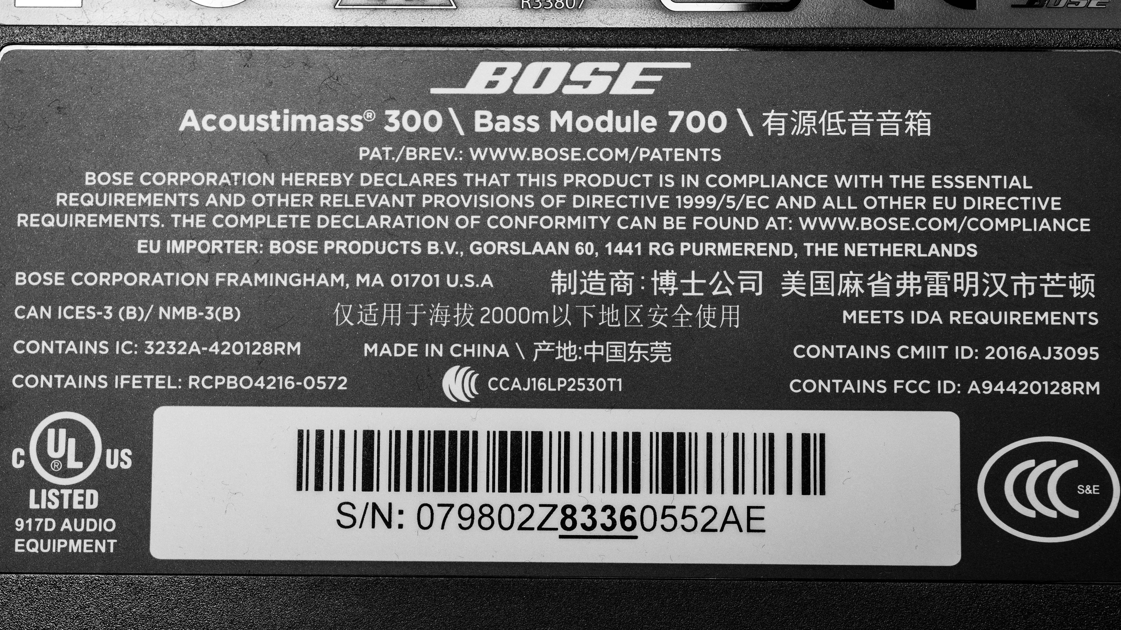 The Bose Smart Soundbar 900 with Speakers and Bass Module is available in 'Black' and 'Arctic White'. We expect both color variants to perform similarly. We tested the 'Black' variant, and you can see the label we tested here.