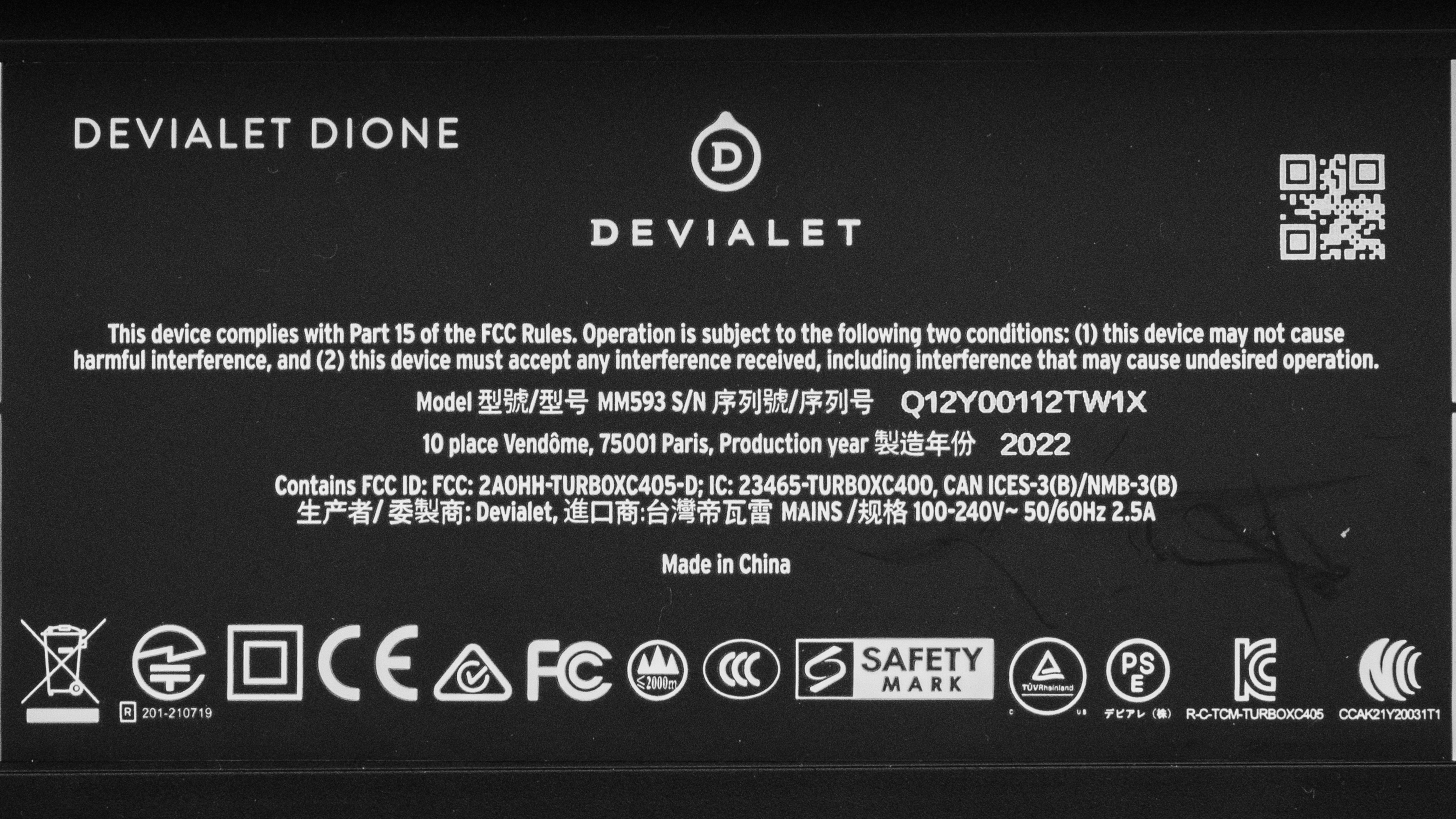The Devialet Dione soundbar is available in 'Matte Black'. You can see the label for the model we tested here.