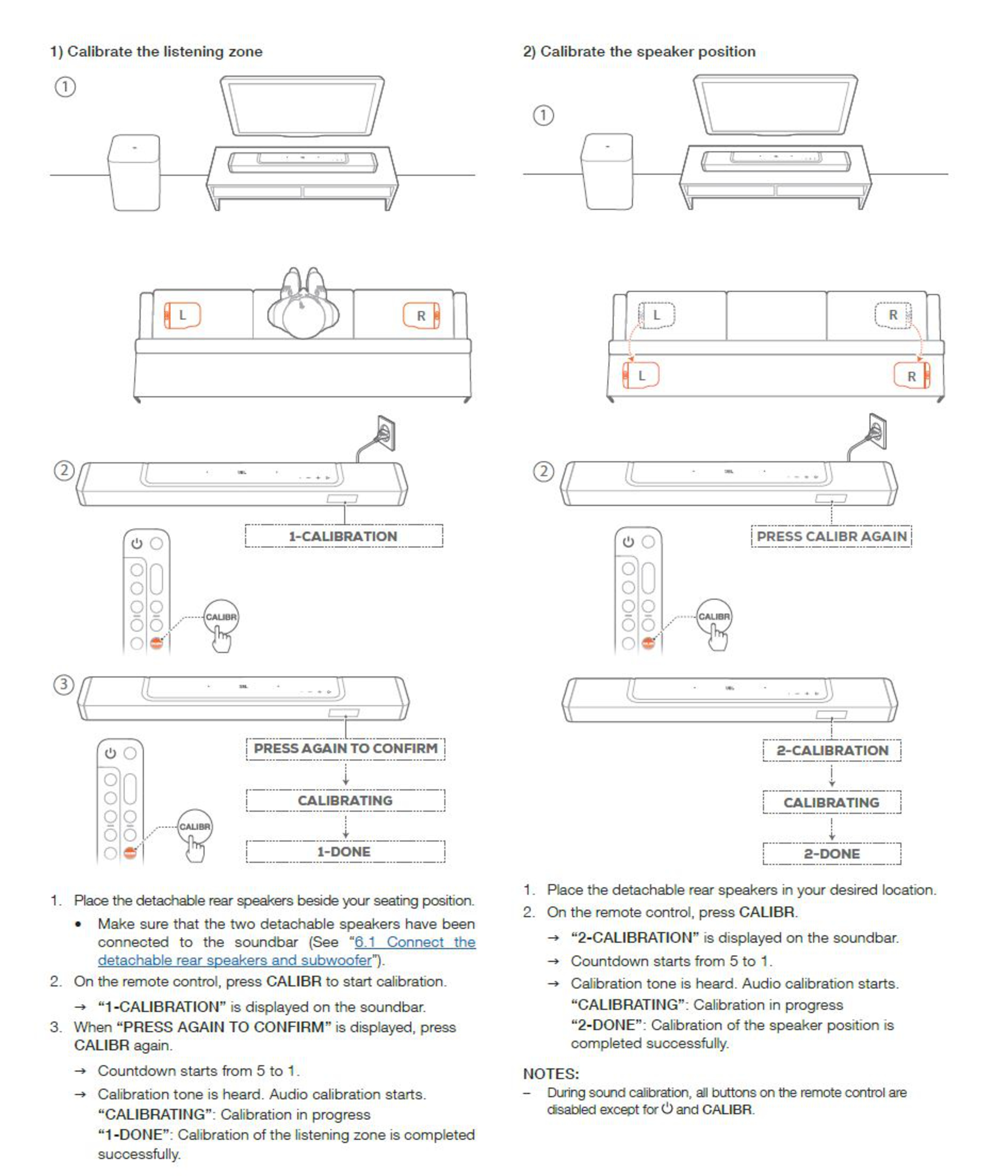 The JBL Bar 1000 comes with lots of sound enhancement features to help make the most of your audio content. As with most premium setups, there's a room correction feature to adjust its output based on your room's unique acoustics—you can read about the two-step calibration process here. The Smart Mode preset acts as a virtual surround tool to bring added richness to sound effects in the mix. If you don't like spikes in volume between programs, you can activate the Night Mode feature by holding the Mute button on the remote for five seconds and then pressing the '-' button. Detaching the satellites gives you access to rear and surround level adjustments.