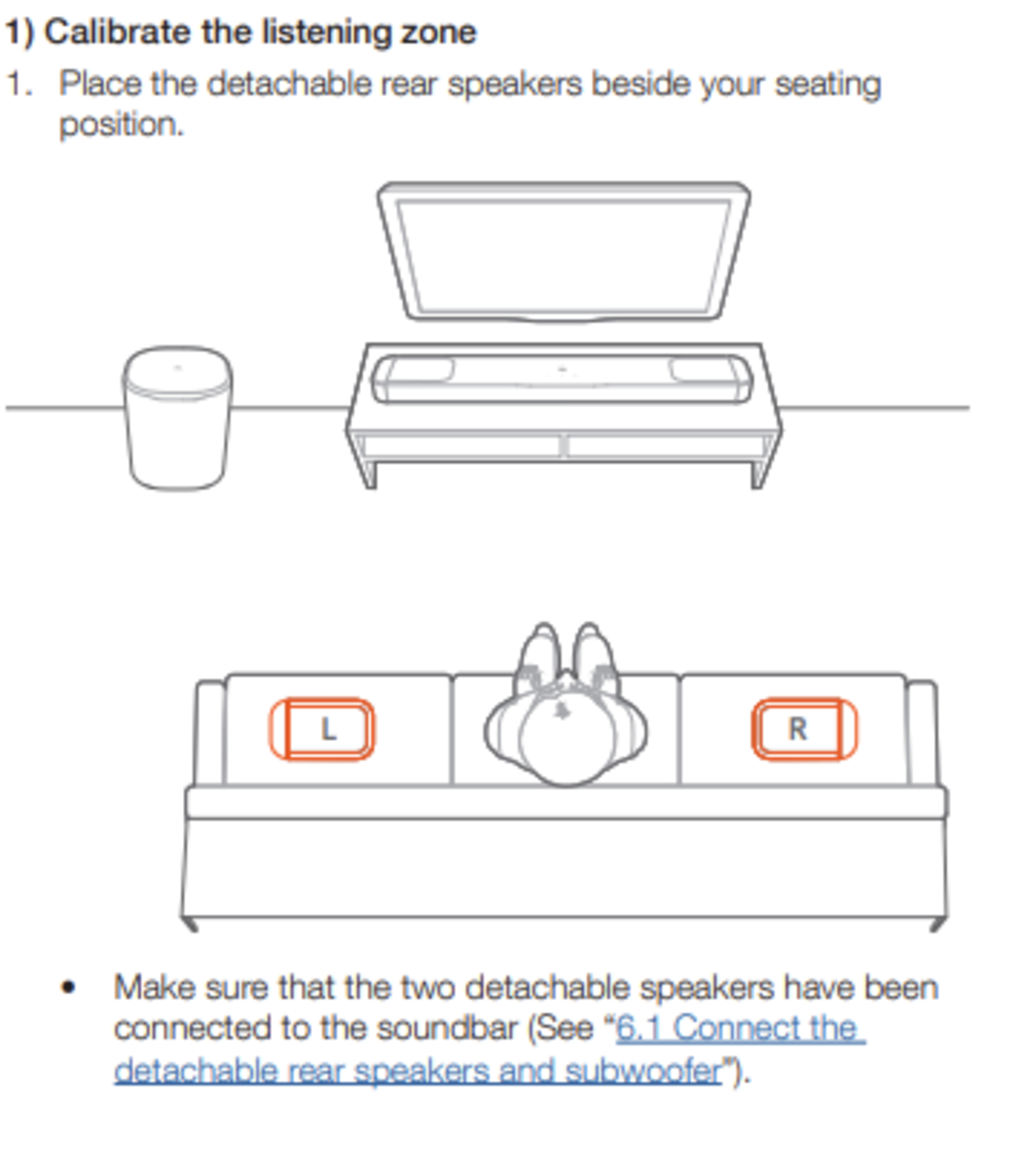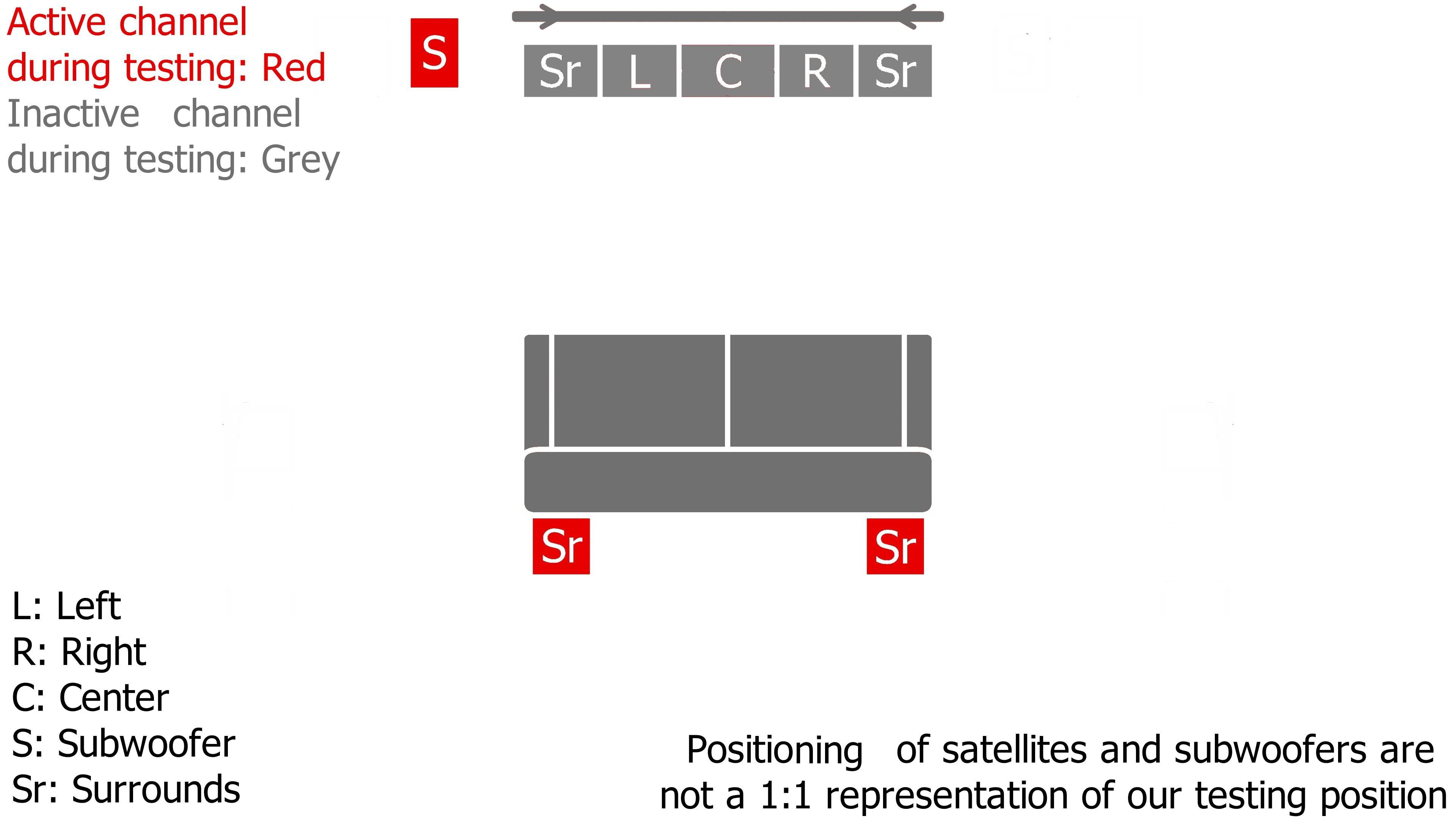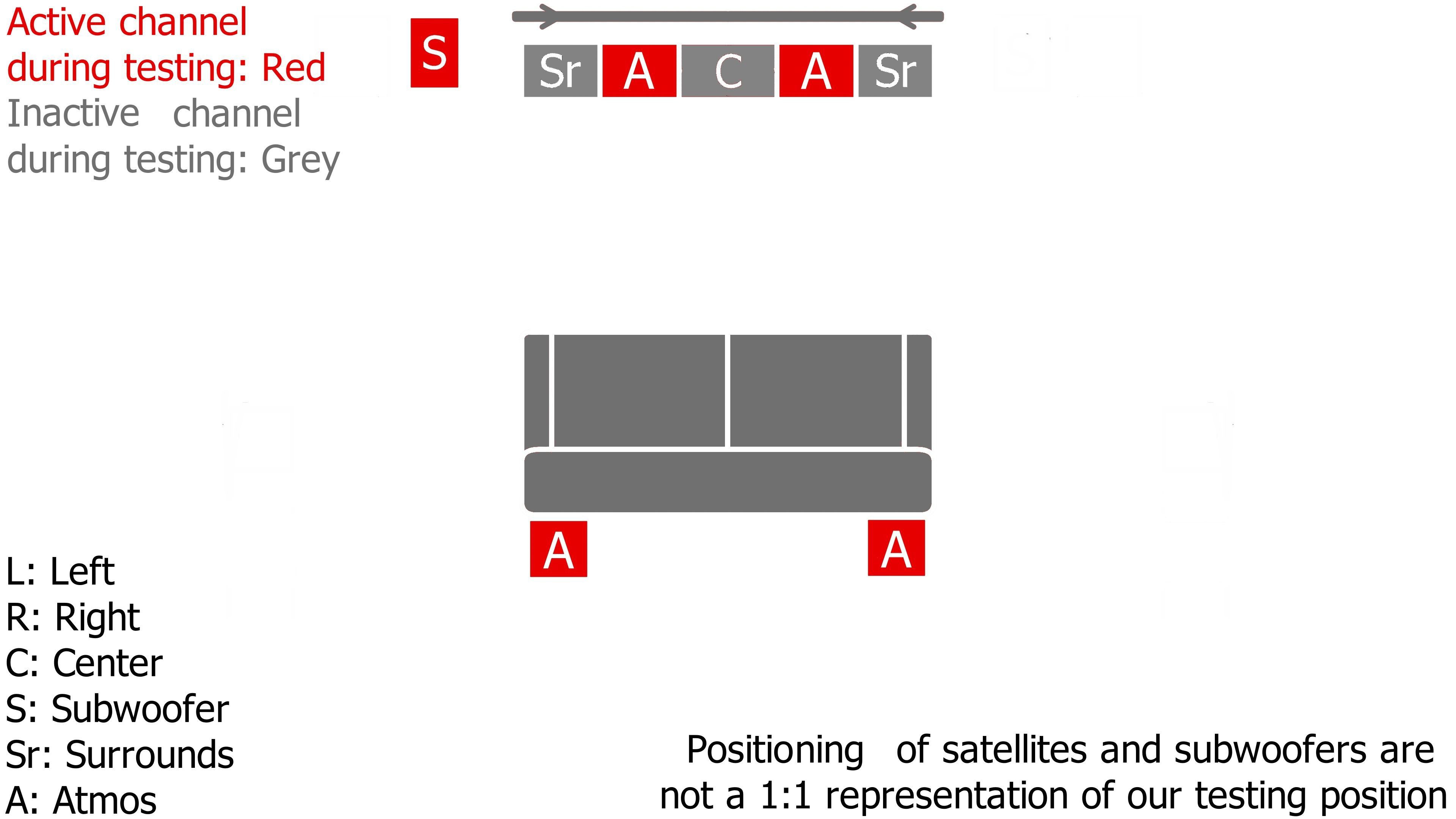 Satellites exhibit latency compared to the soundbar and sub with Dolby Atmos.
