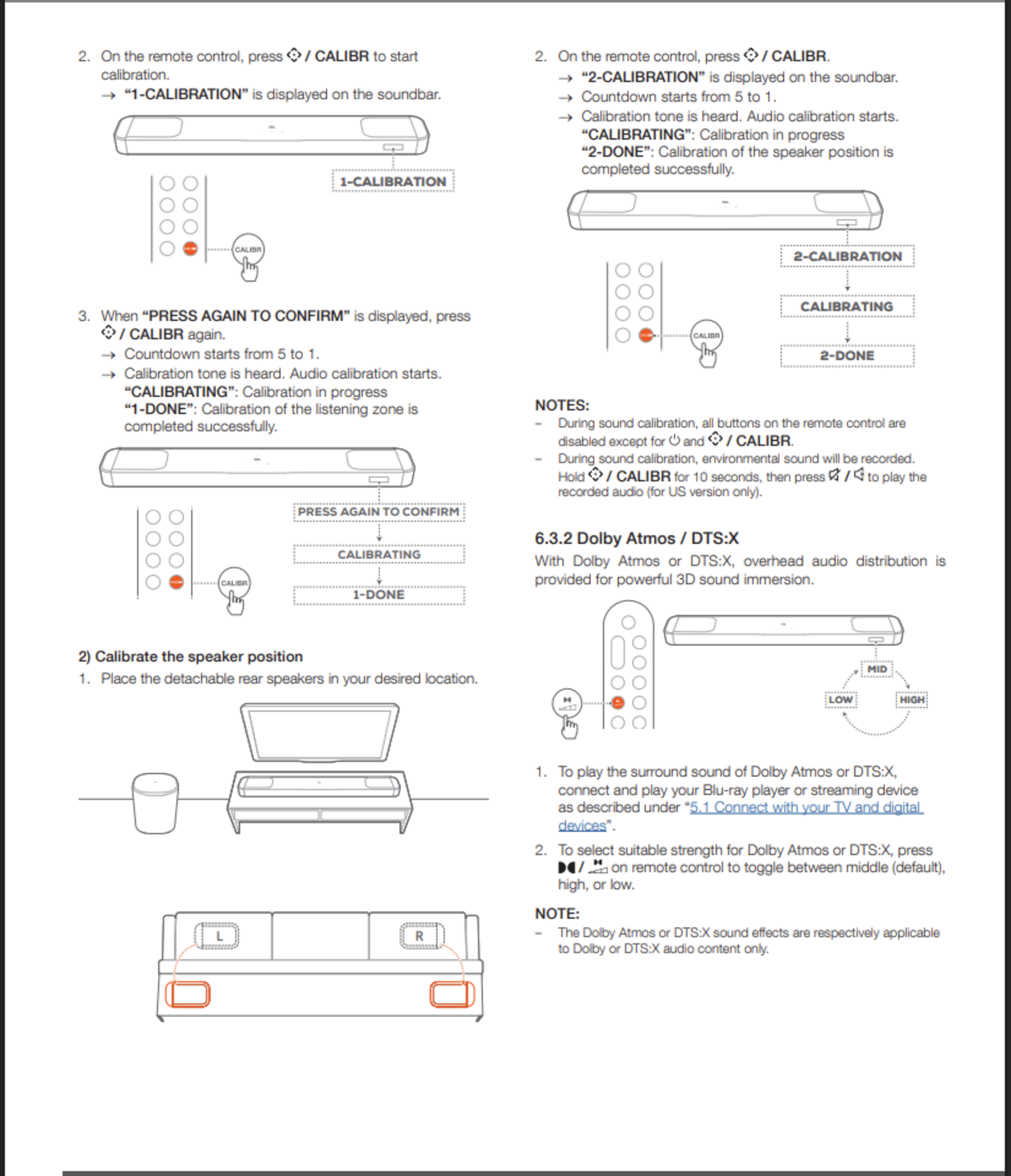 The JBL Bar 1000MK2 supports the usual audio format suspects: Dolby Digital, DTS, and PCM. This covers most streaming services and Blu-rays. Since this bar processes Dolby Digital audio by sending L/R channels simultaneously to the rear satellites, as designed by the manufacturer, panning from a satellite to its matching L or R channel doesn't occur. Instead, audio will play from the satellite and the respective left or right front-facing driver.