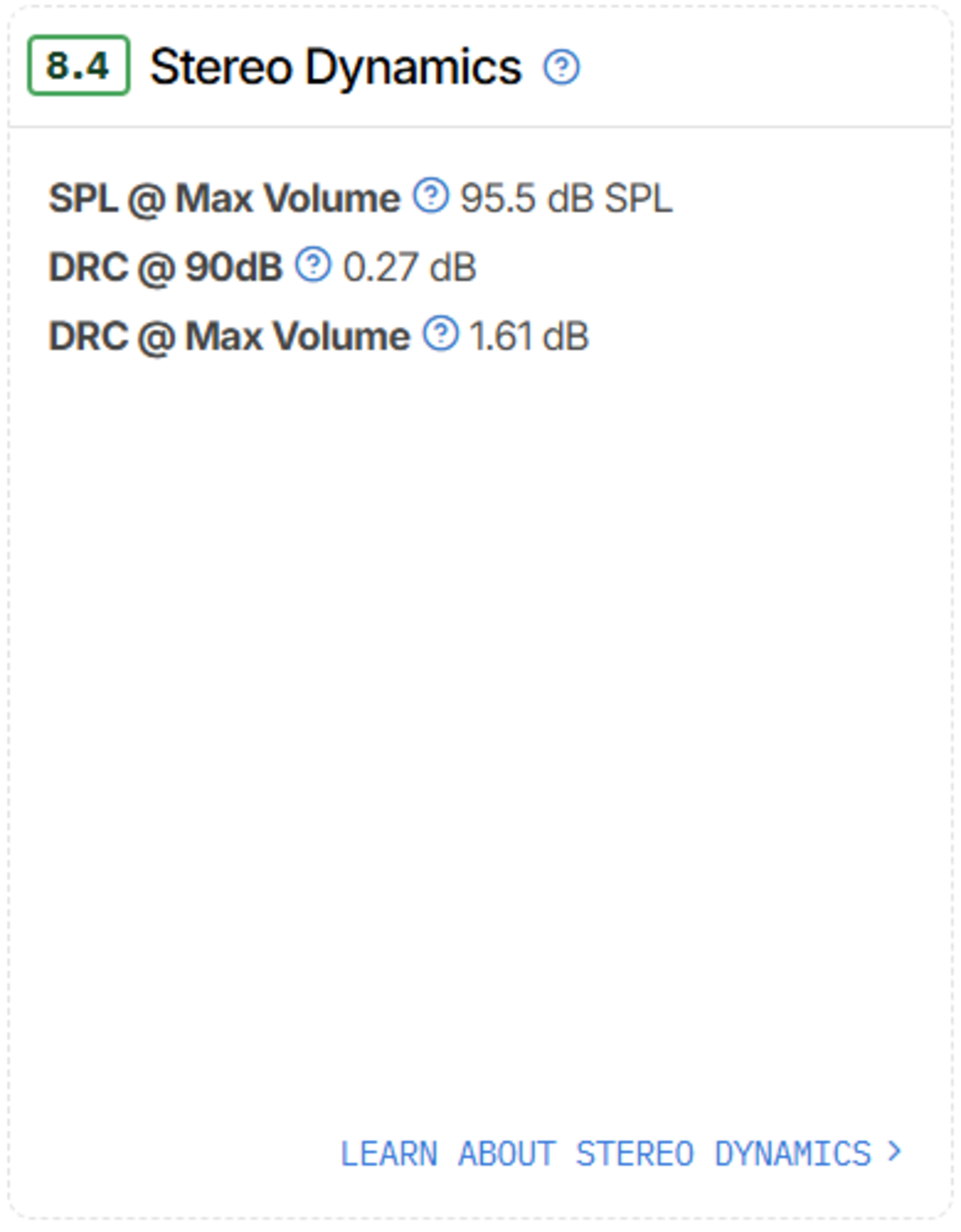 The JBL Bar 1000 MK2 gets pretty loud and demonstrates impressive dynamics. If you push the bar to max volume, limiting occurs in the treble region. If you turn off 'Smart Mode,' there's slightly less dynamic range compression at maximum volume, but otherwise, the performance is comparable to the results with 'Smart Mode' on.