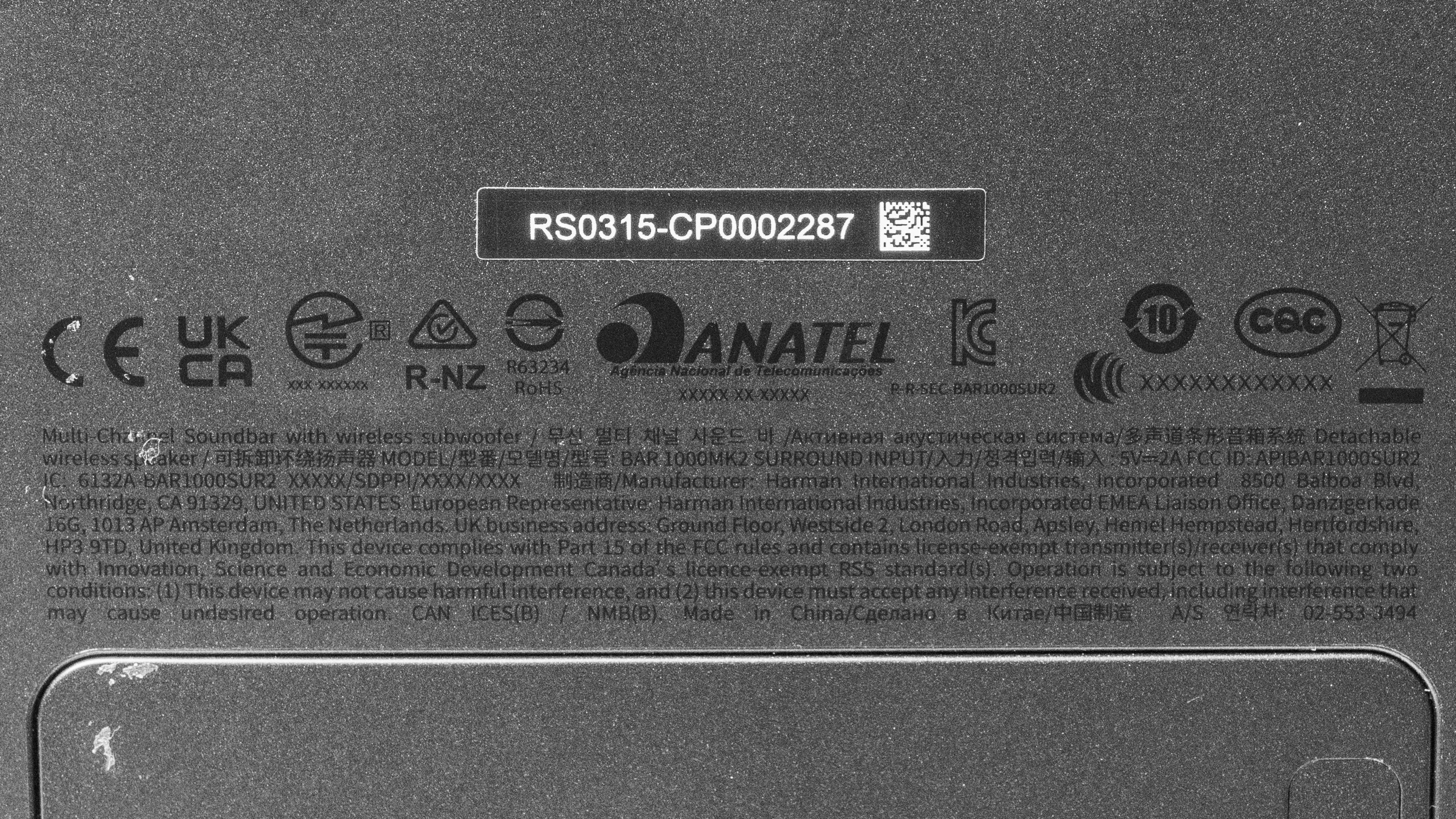 The JBL 1000MK2 comes in one color, 'Black.' You can view the label for the soundbar and one of the satellites. If you encounter another variant, please let us know in the comments, and we'll update our review.