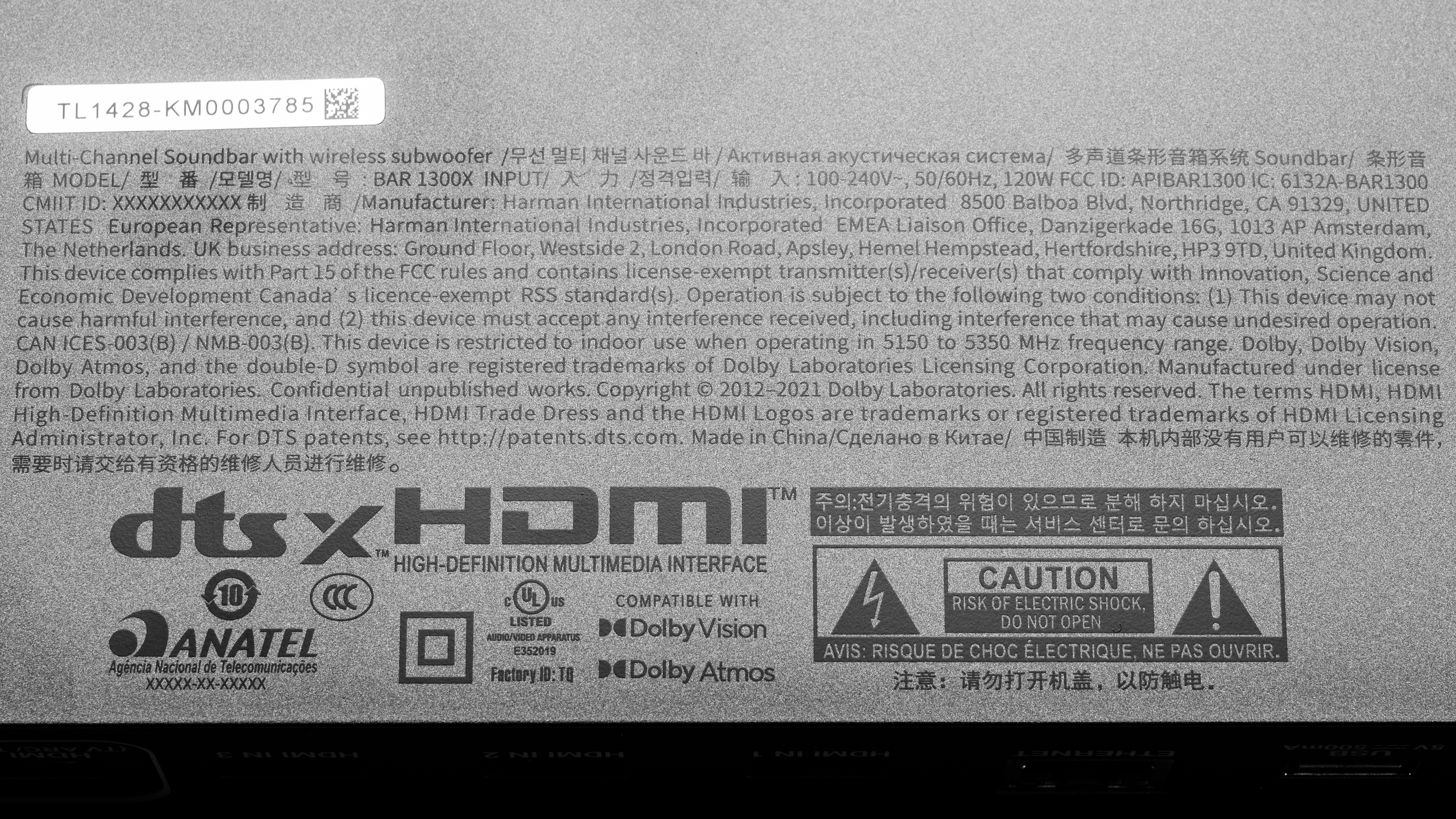 The JBL Bar 1300X is available in Black and the label for our model is available here.