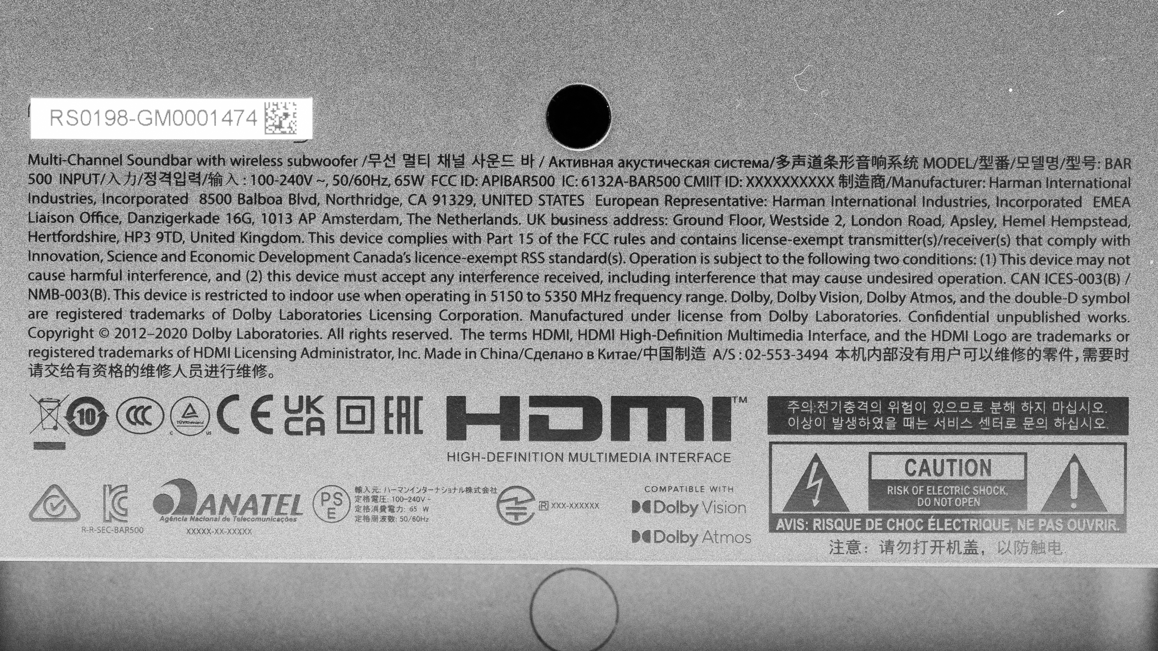 The JBL Bar 500 soundbar is available in Black. You can see the label for our tested model here.