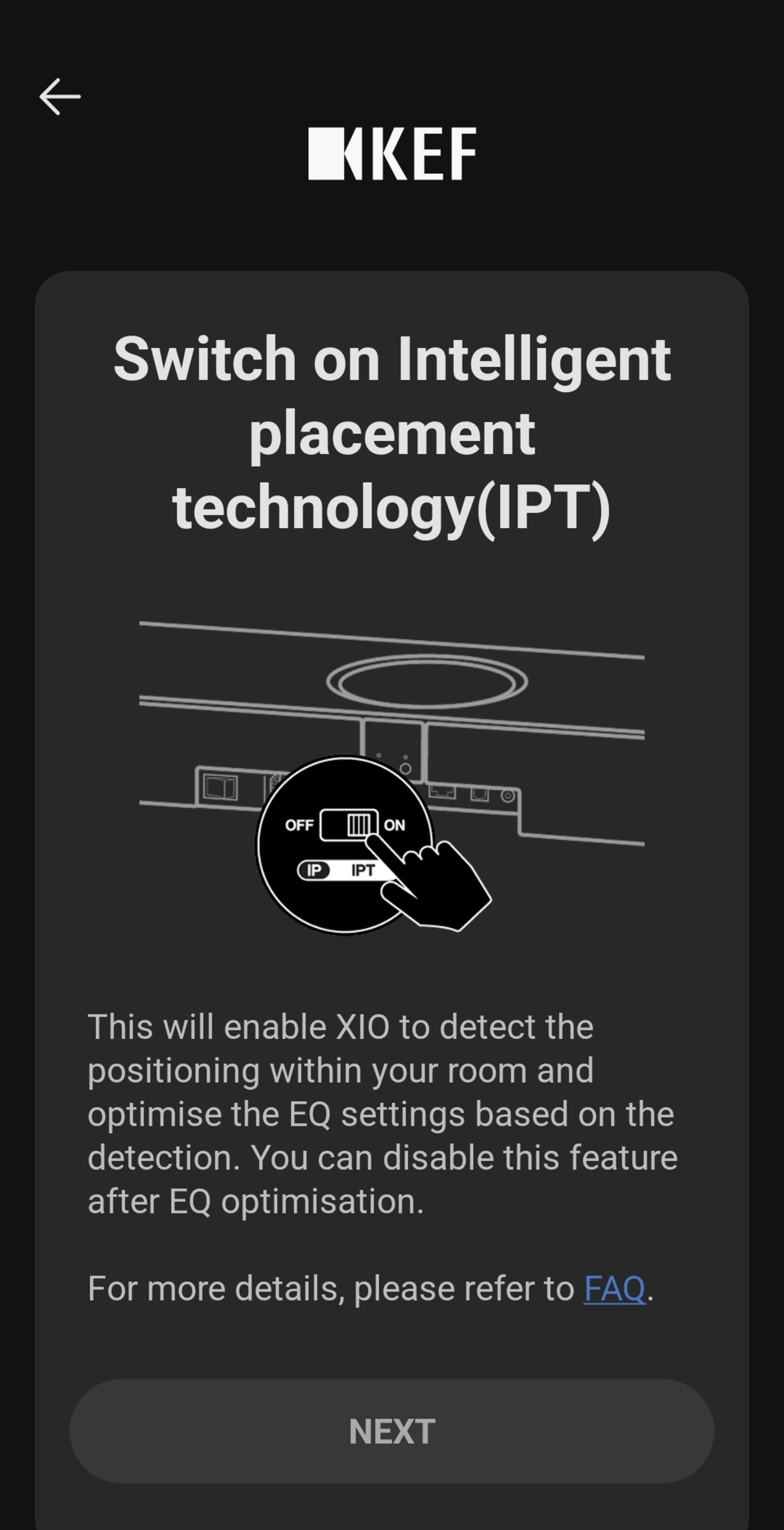 It's worth noting that IPT isn't a room correction system. Instead, once turned on, it optimizes performance based on placement, automatically switching the up-firing and stereo drivers when the soundbar is positioned vertically. KEF also claims IPT can detect nearby objects to adjust output, but in testing, we couldn't measure any meaningful difference with this feature toggled on or off.