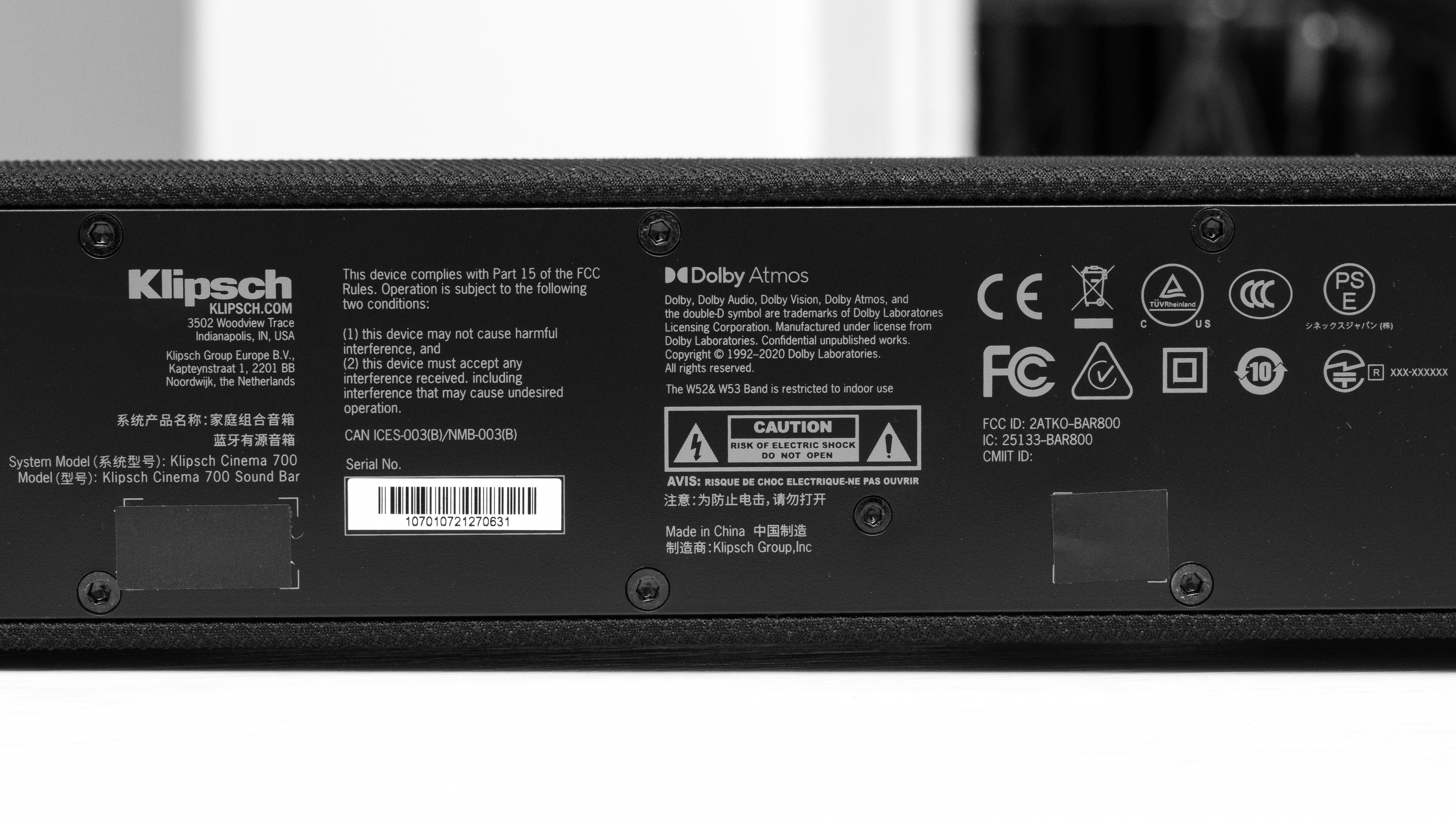 The Klipsch 700 is available in 'Black', and you can see the label for the model we tested here.