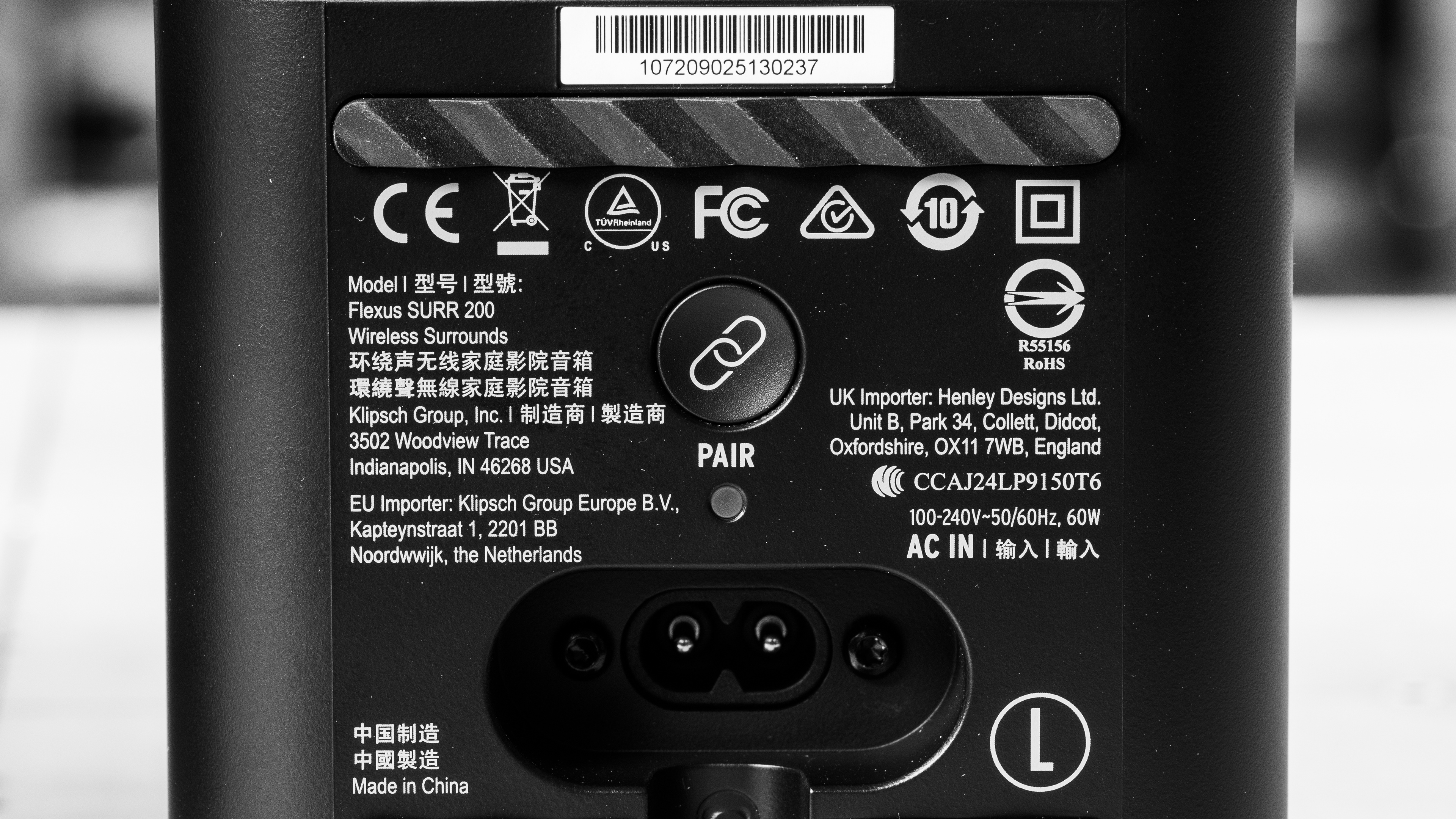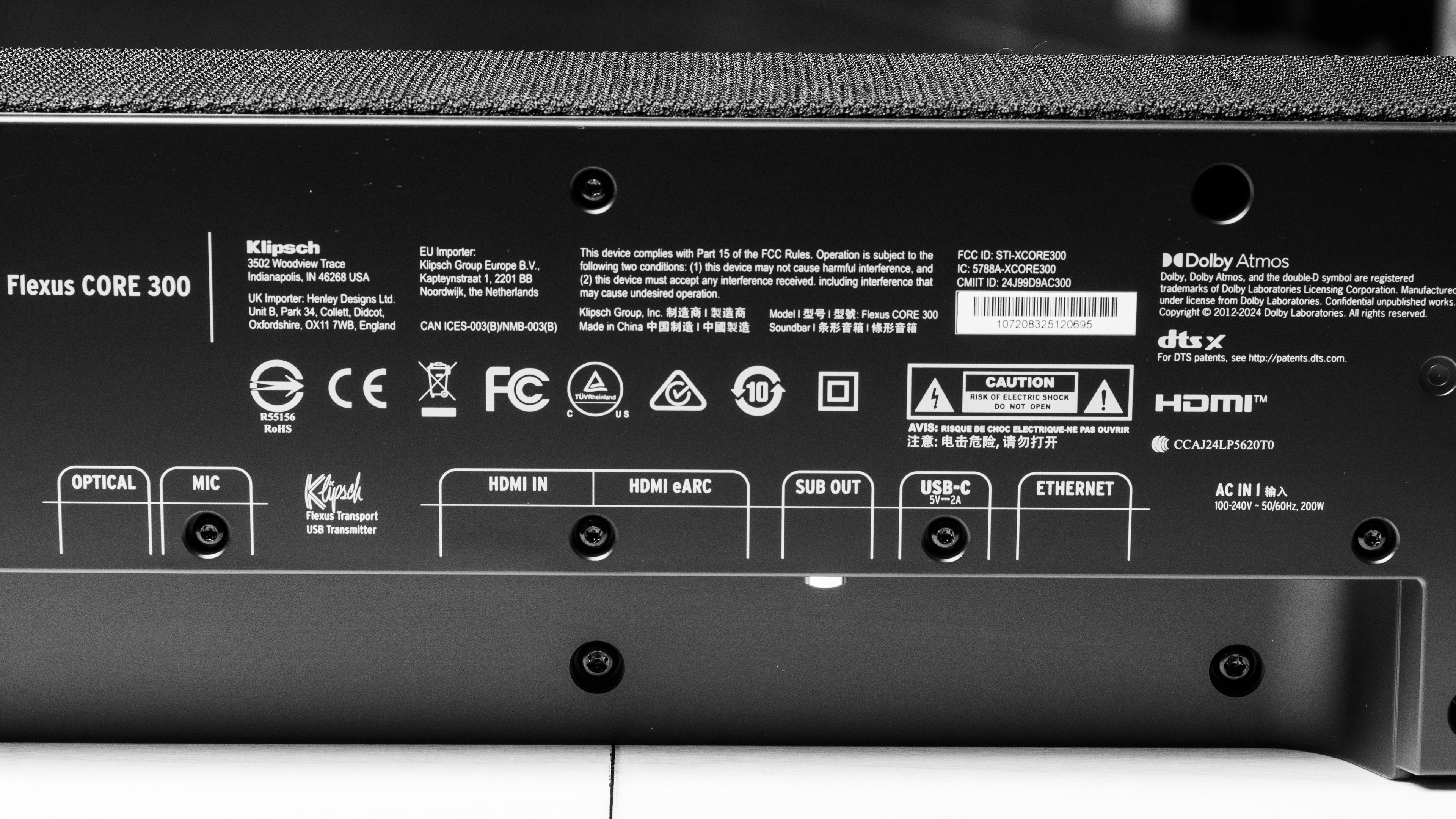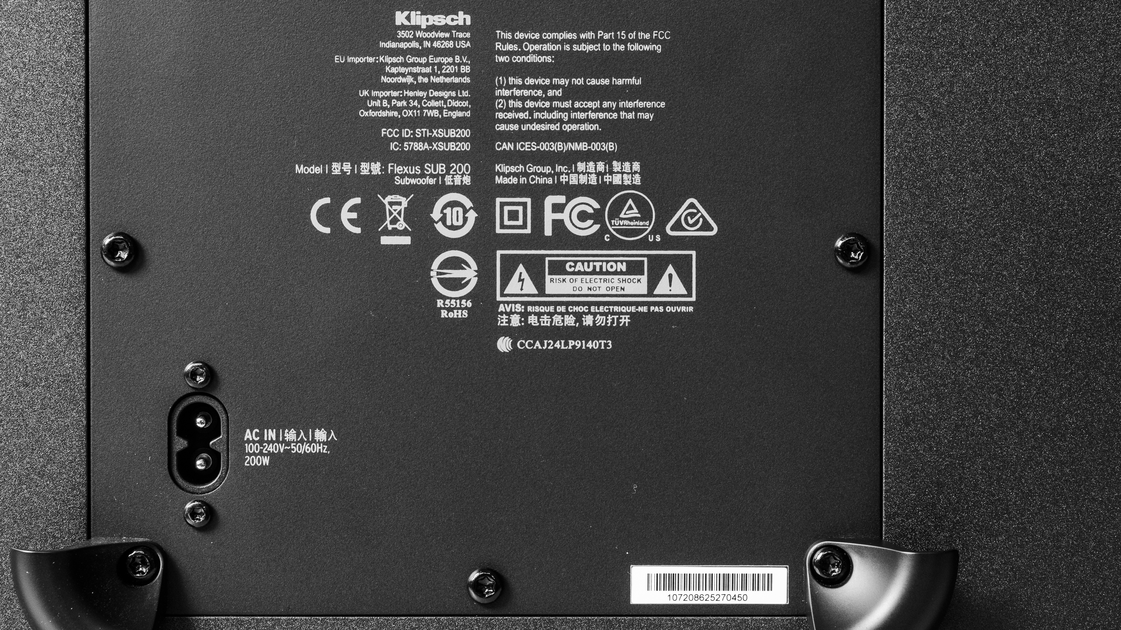 The Klipsch Flexus Core 300 with Sub 200 + Surr 200 is made of discrete products that you bundle yourself, meaning that depending on which combination of products you assemble, you'll experience different results. However, the core of the various configurations available centers around the all-in-one Klipsch Flexus Core 300, available in 'Black' (like our unit) or 'Walnut Vinyl.' The satellites, Klipsch Flexus Surr 200, are solely available in 'Black' (like ours), but some regions call this 'Ebony Vinyl,' and the same applies to the Klipsch Sub 200 (a photo of our label). In the Flexus line, you may choose the Klipsch Sub 100 or Klipsch Surr 100 instead of the respective 200 models, and we expect these to have an impact on the performance.