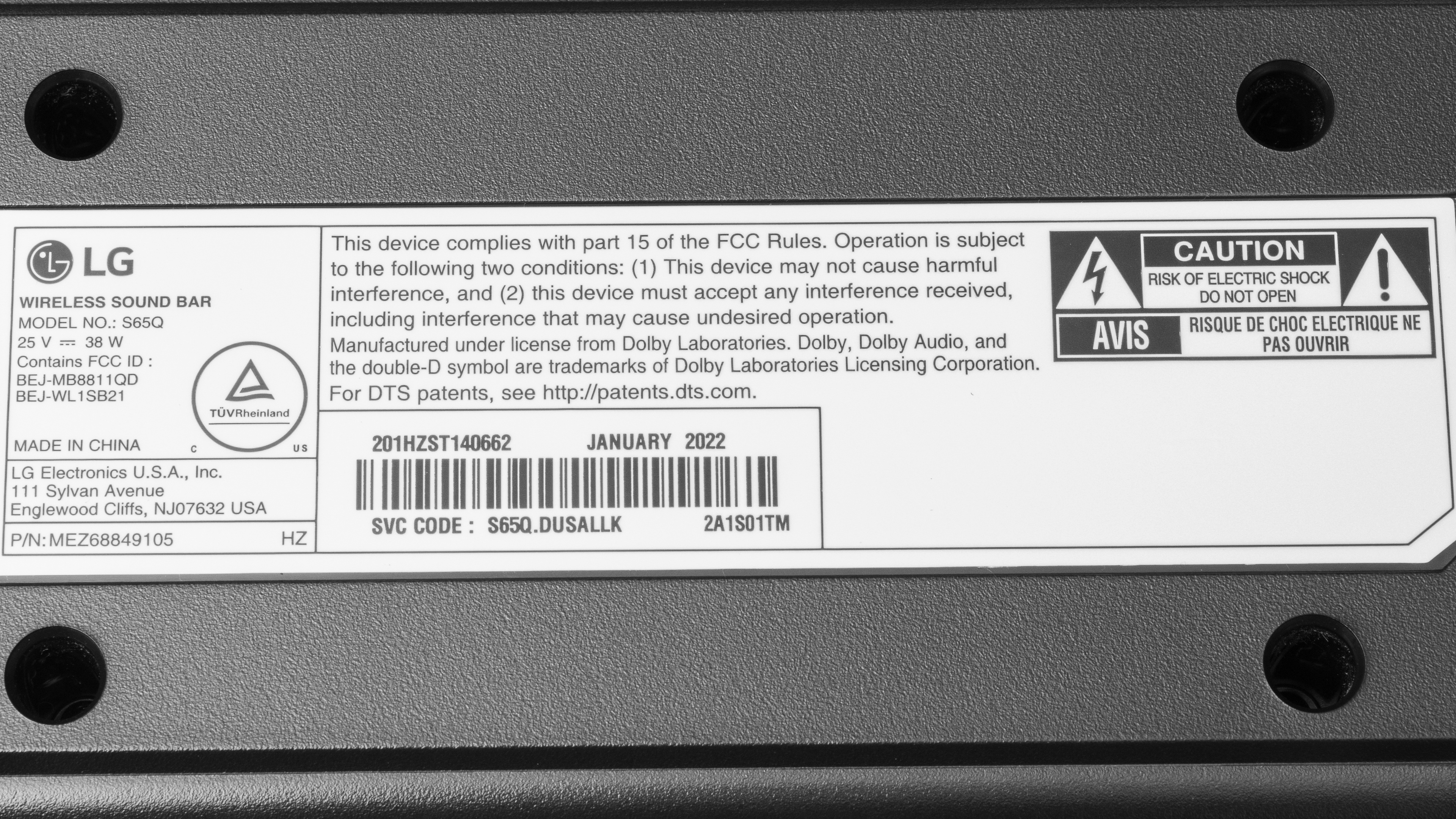 The LG S65Q is available in 'Black', and the label for our model is here.
