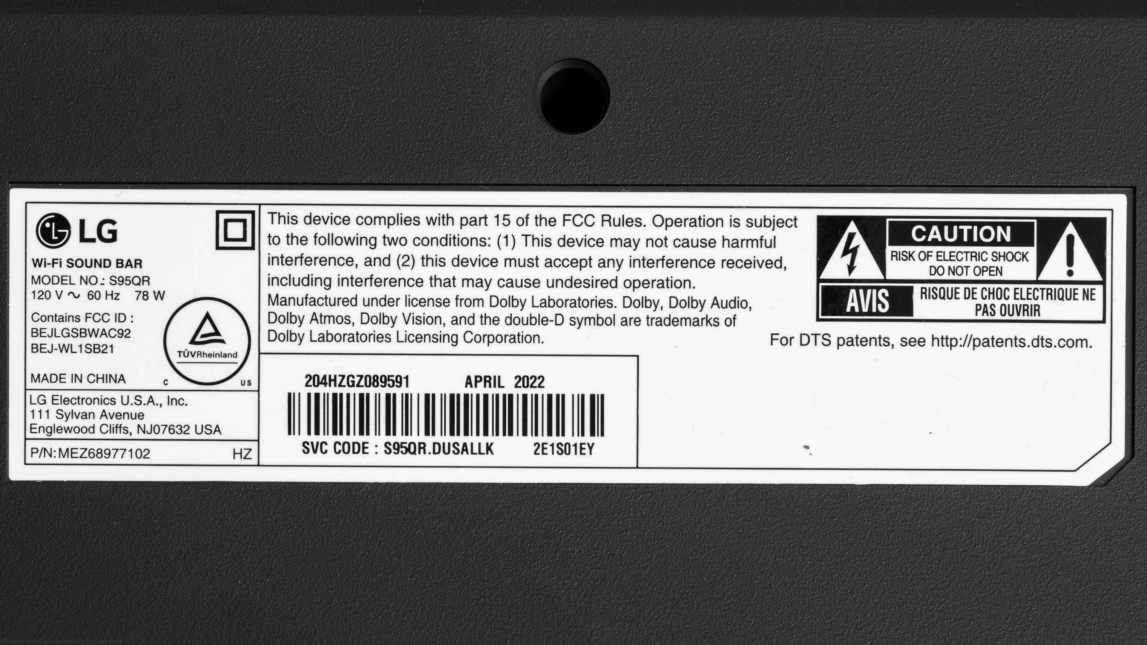 The LG S95QR soundbar comes in 'Black', and you can see the label for the model we tested here.