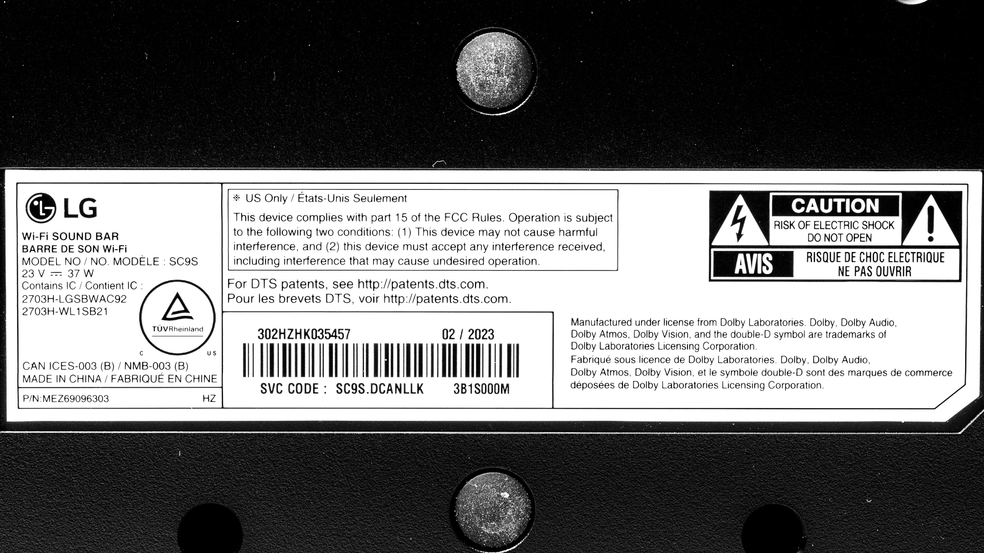The LG SC9S is available in Black. You can see the label for the model we tested here. You can also purchase this soundbar at Costco under the name 'LG Soundbar C'; it's functionally the same as the LG SC9S.