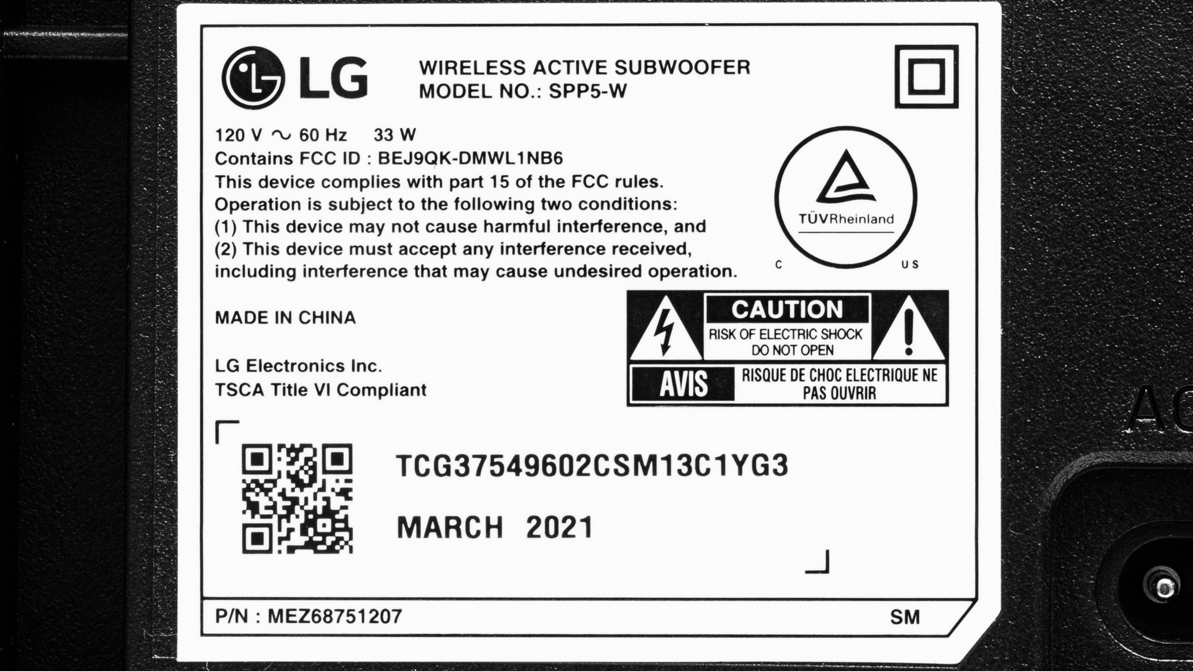 The LG SP7Y Soundbar comes in 'Black', and you can see the label for the model we tested here.