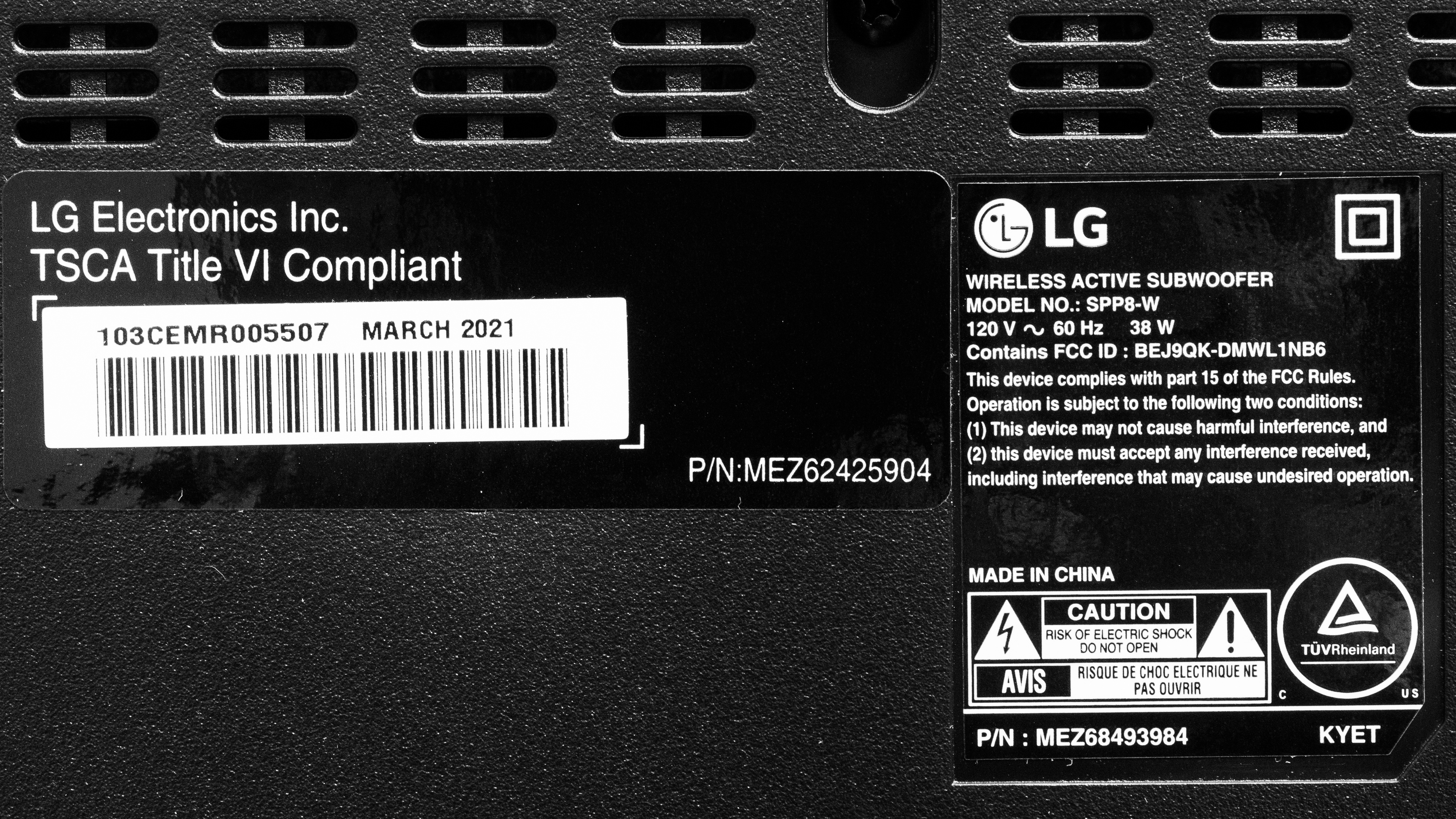 The LG SP8YA comes in 'Black', and you can see the label for the model we tested here.