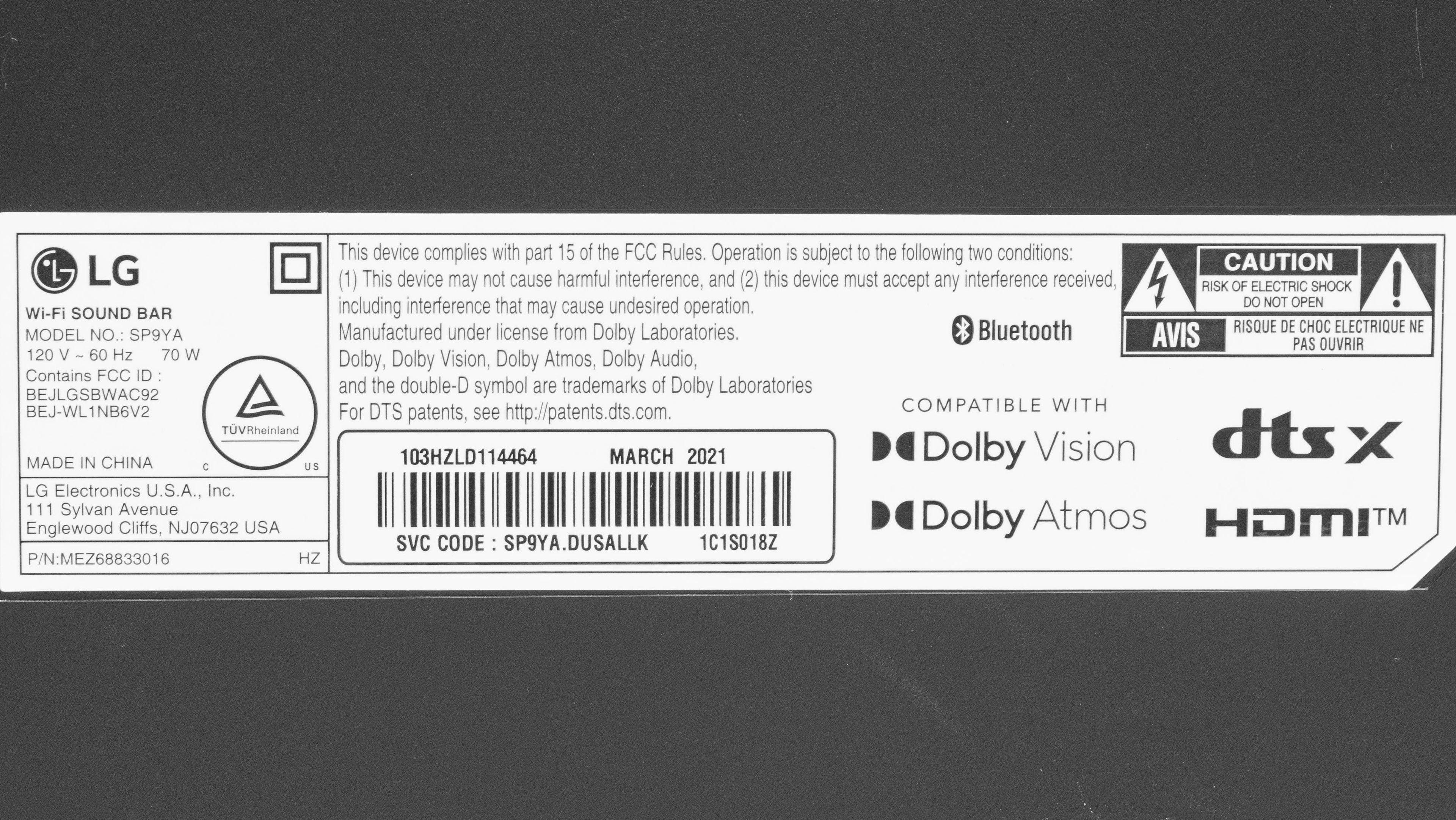 The LG SP9YA comes in 'Black', and you can see the label for the model we tested here.