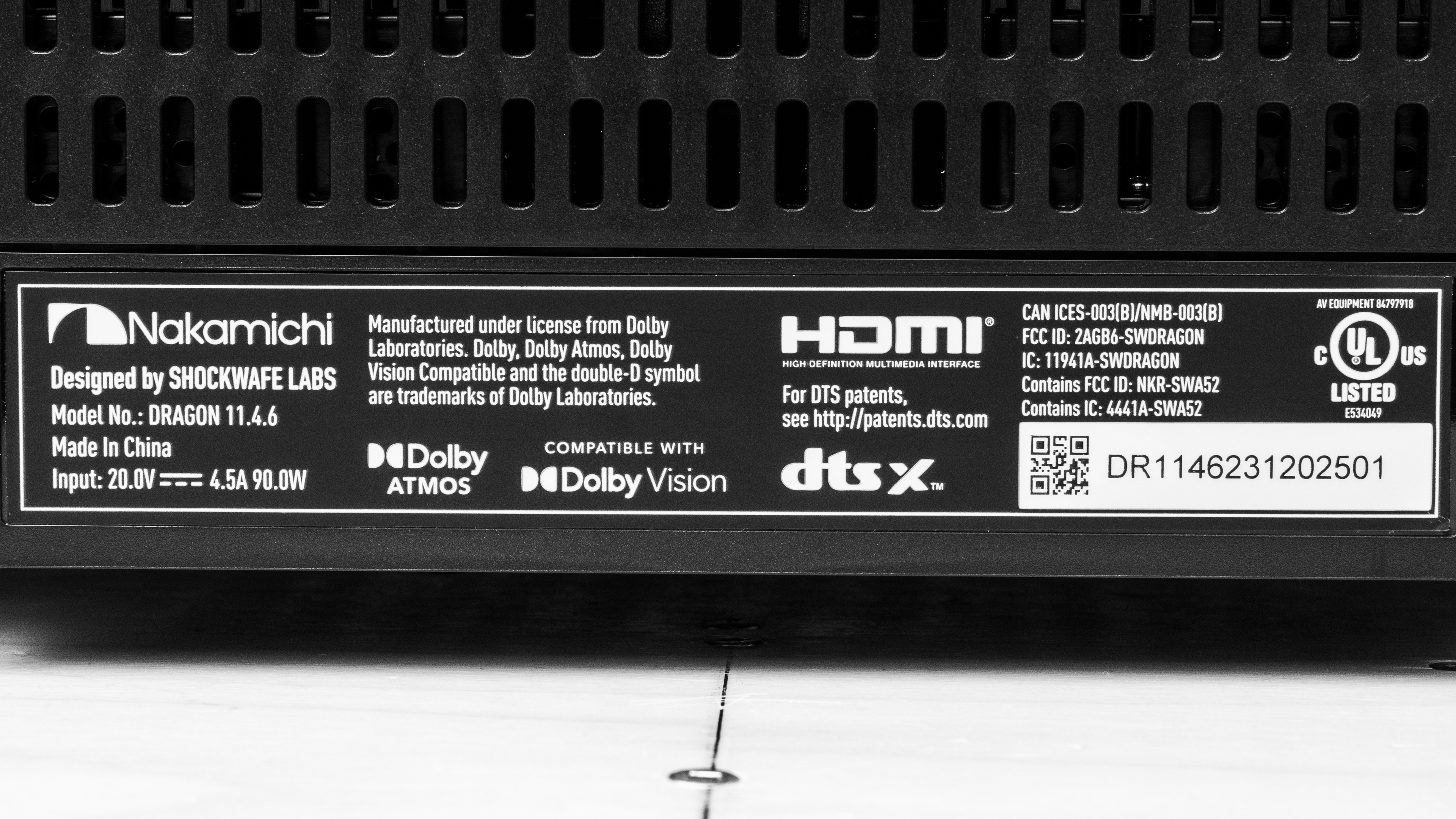 The Nakamichi DRAGON 11.4.6 comes in just one colorway: 'Black' (you can see a picture of our unit's label here). However, there are a number of different configurations available. Our unit features the base configuration of two eight-inch subs, but up to four 12-inch subs can be added for additional bass-range heft.
