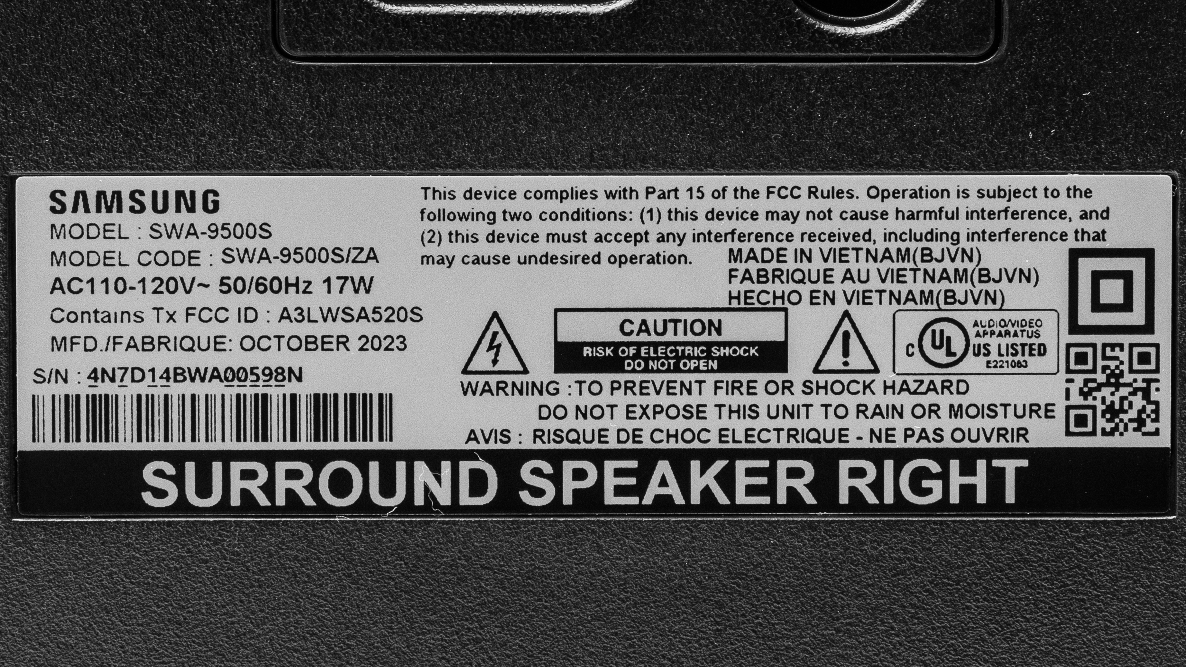 The Samsung HW-Q700C with SWA-9500S are two separate products that can be added together for a more immersive setup. Both the soundbar (HW-Q700C) and satellites (Samsung SWA-9500S) only come in one color: 'Black.' You can see our soundbar's label here and the label of our satellites here.