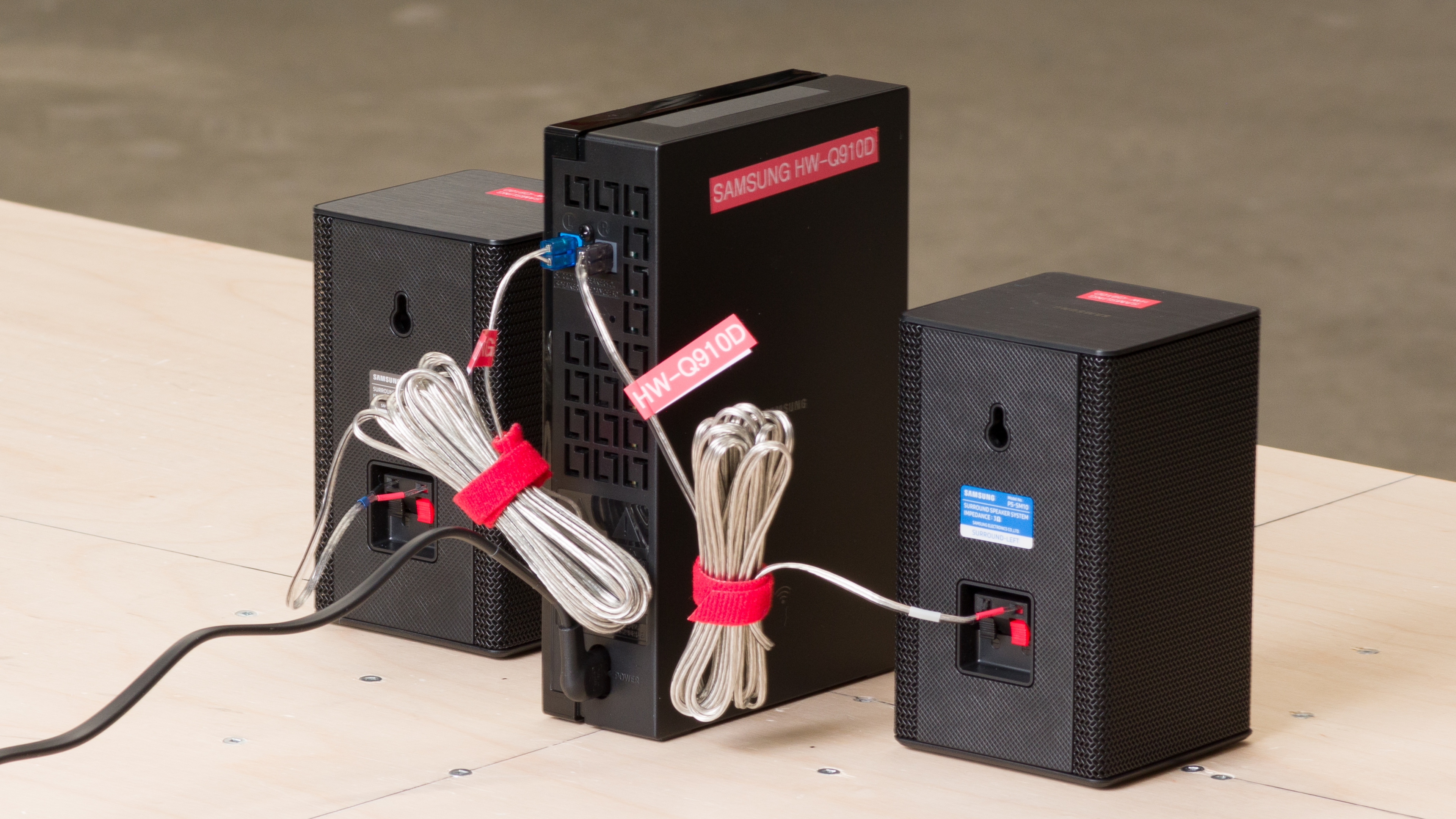 The Samsung HW-Q930D and the Samsung HW-Q910D are very similar soundbars, and choosing between them might come down to very small deciding factors. The Q930D is slightly better-built and features fully wireless satellites, while the Q910D requires the satellites to be wired to a receiver. The Q930D also features two more up-firing drivers that help create a more immersive vertical plane in Atmos content, compared to the Q910D. Though the two are neck-and-neck in our other sound tests, the Q910D has a more balanced frequency response out-of-the box. It also supports 4k passthrough at 120Hz, which is great if you plan on using the bar as a hub between your console and display.