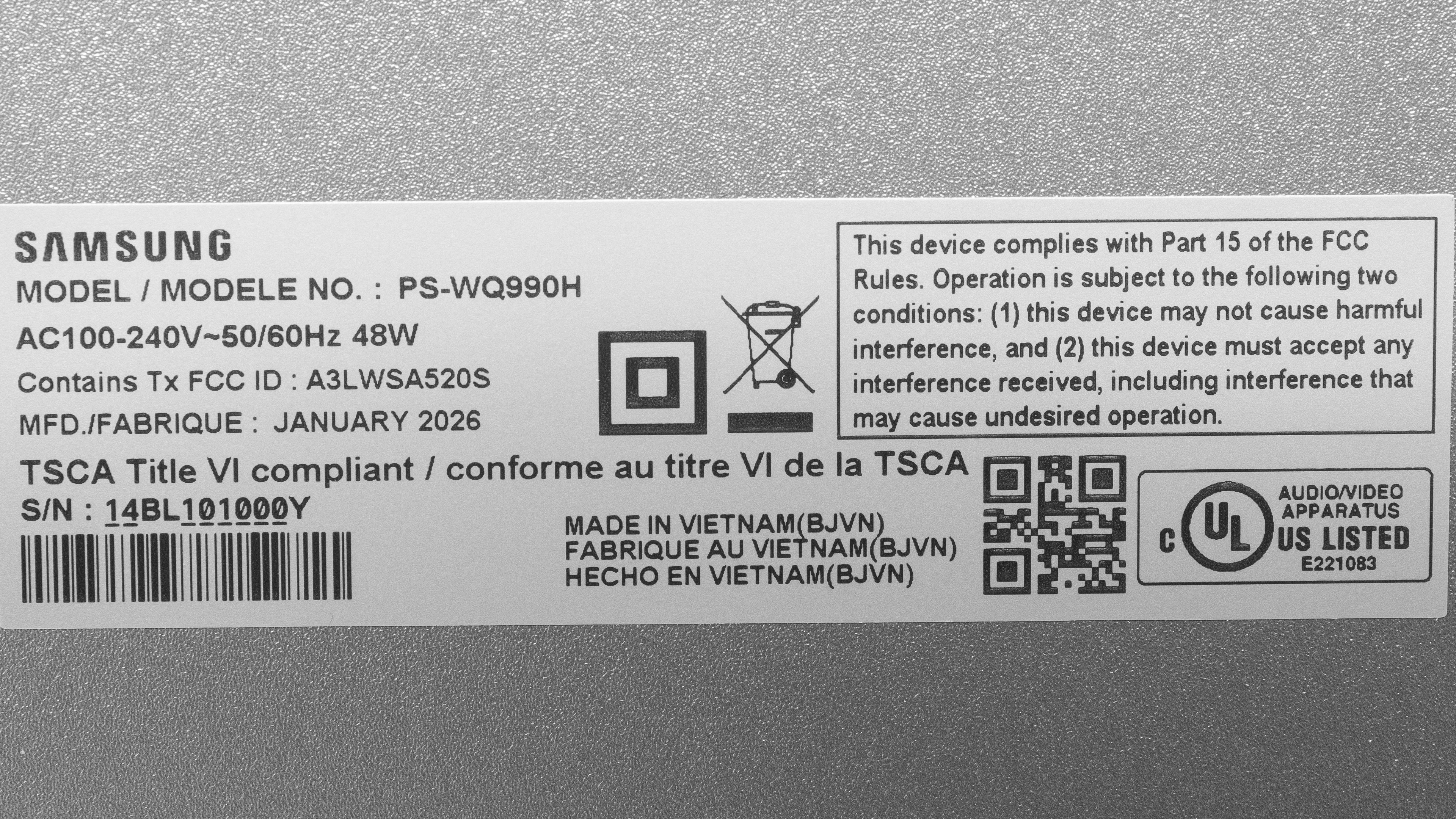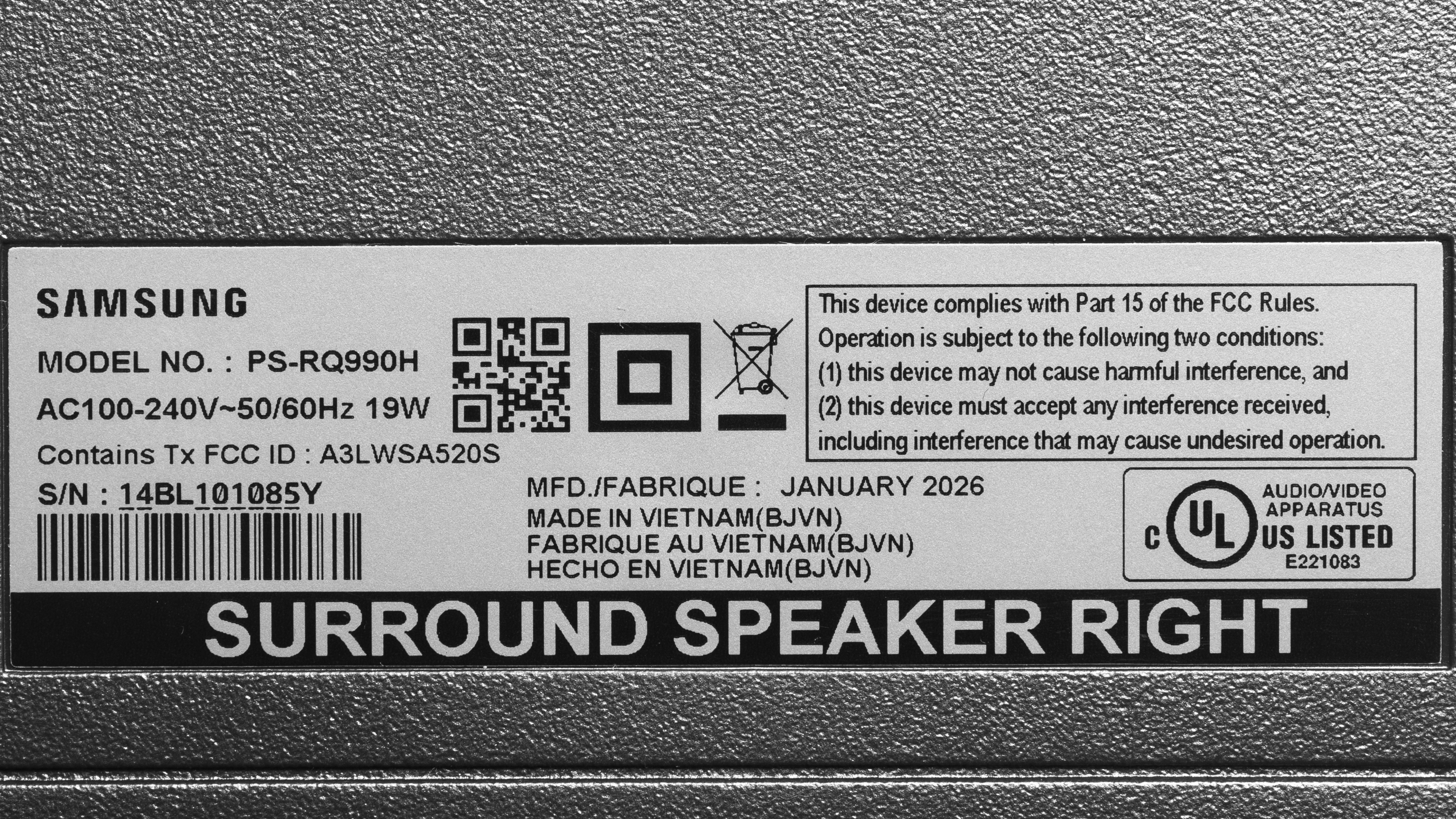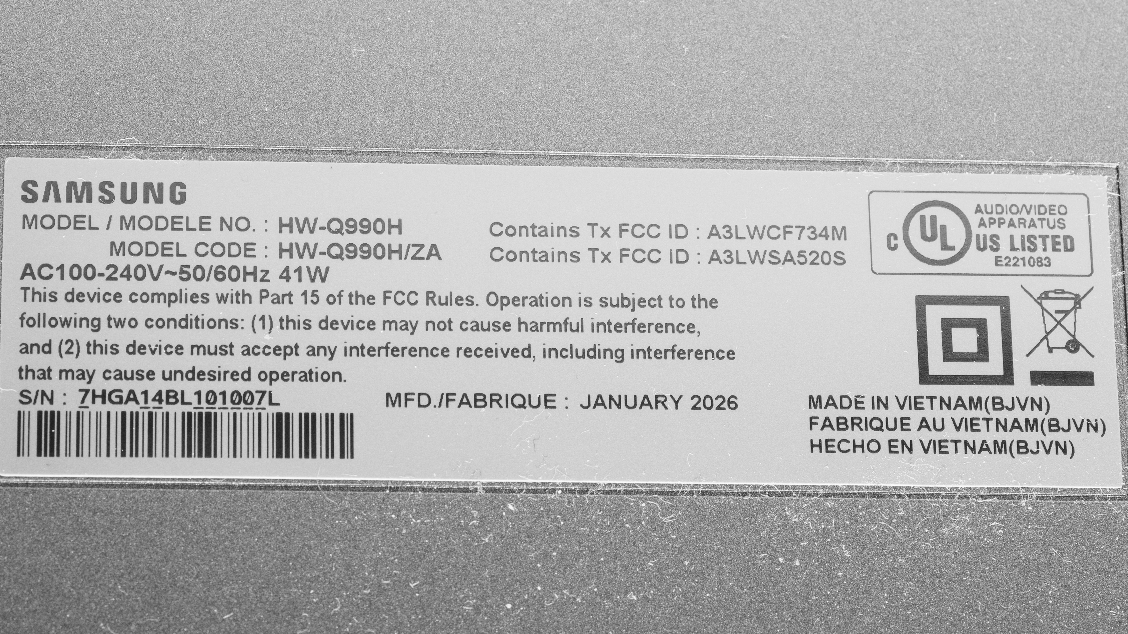 The Samsung HW-Q990H comes in one color variant: 'Black'. We took photos of the labels found on the bar, sub and satellite speakers. If you encounter another variant of this soundbar, please let us know in the comments and we'll update our review.