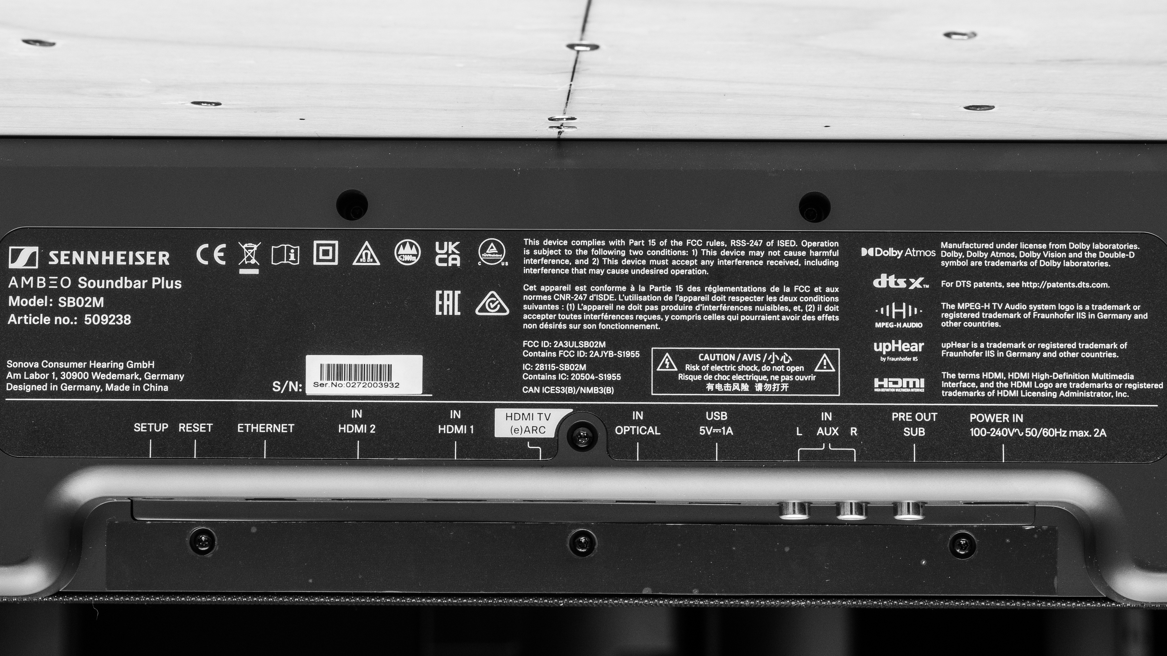 The Sennheiser AMBEO Soundbar Plus is available in Black. You can see the label for the model we tested here.