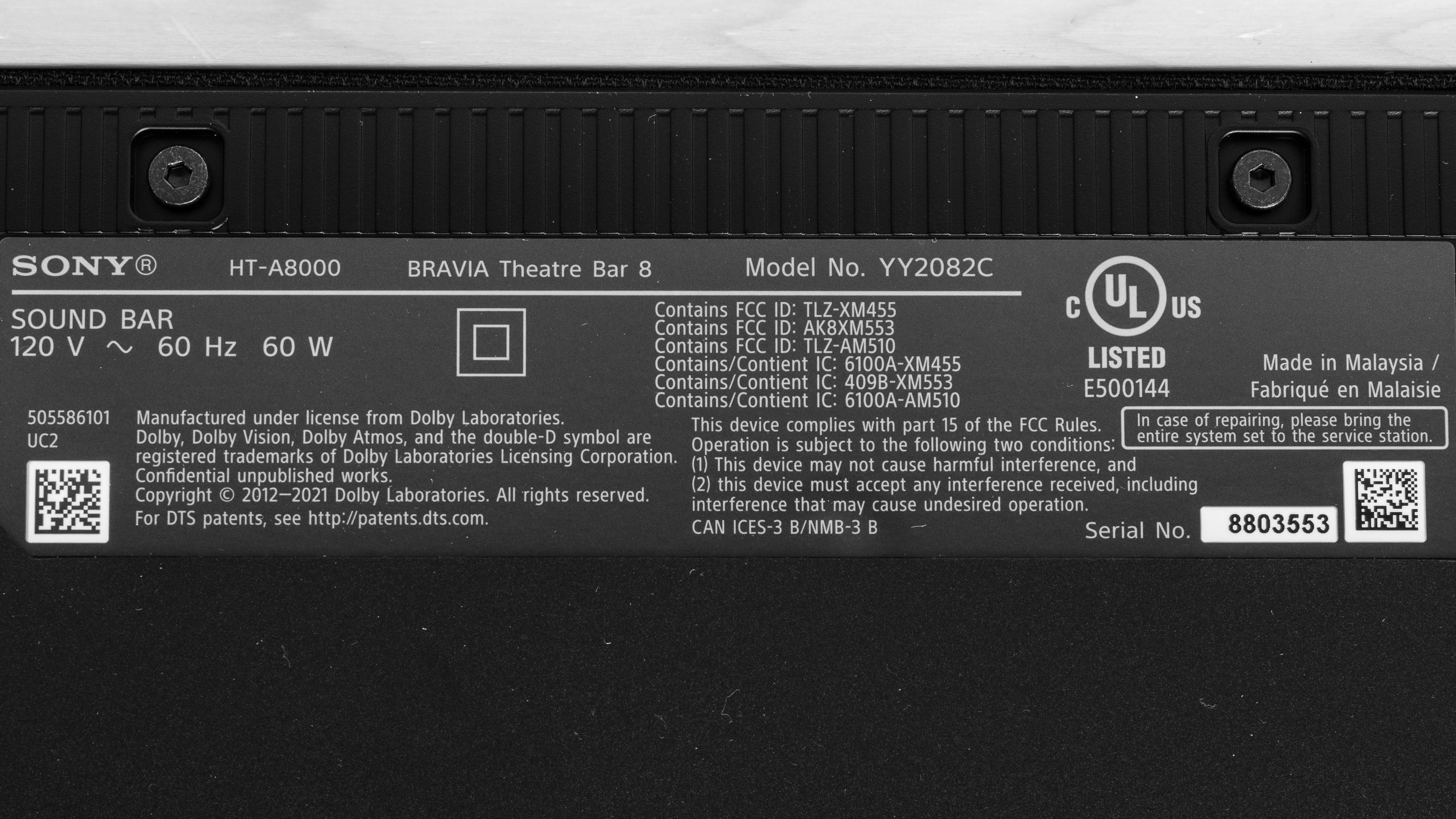 The Sony BRAVIA Theater Bar 8 can be bought as a standalone in a single color, 'Black.' You can see the label for our unit here. The soundbar is also compatible with satellites and subwoofers sold separately. If you come across another variant of this soundbar, let us know in the comments, and we'll update our review.