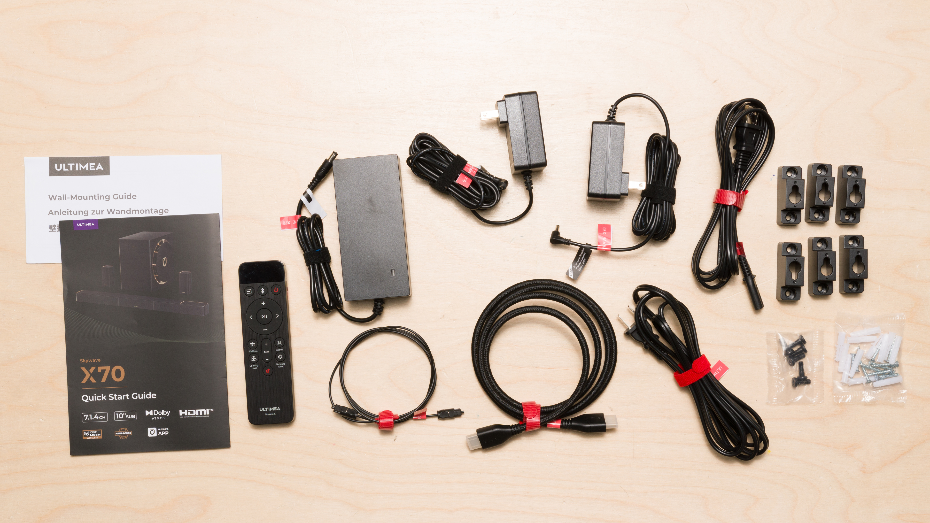 The Ultimea Skywave X70 is a 7.1.4 setup with a discrete subwoofer and two wireless rear speakers. It's positioned to compete with other mid-range offerings from big-name competitors, standing out from the crowd with its snazzy black and gold aesthetic and a host of proprietary technologies. Among them, X-Upmix allows you to up-mix non-Dolby content virtually, while the Gravus subwoofer promises serious low-end oomph.