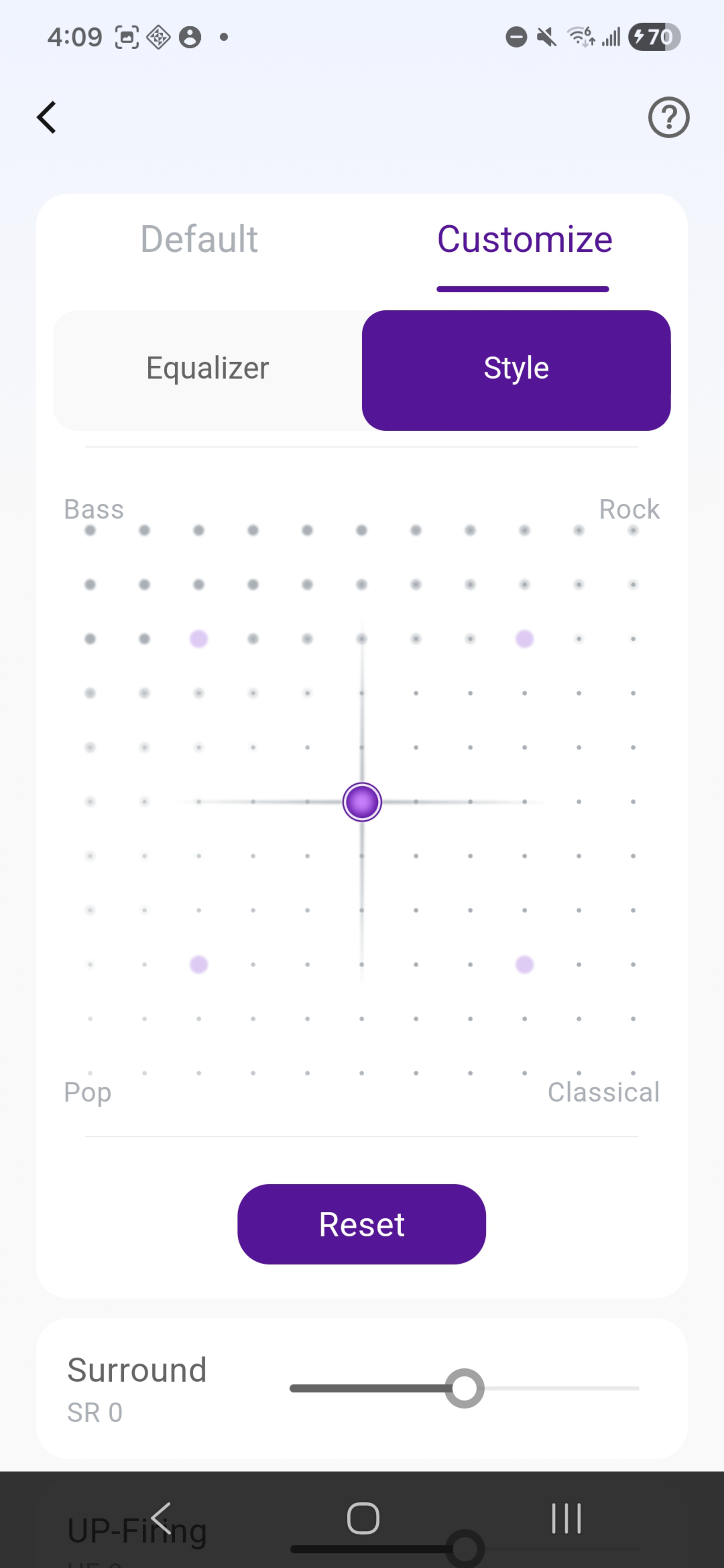 The Ultimea Skywave X70 comes equipped with an array of sound customization options. As with most other bars, there's a voice enhancement mode and a night mode (which disables the sub) to complement the other EQ modes such as 'Cinema', 'Music', and 'Game'. Each mode has its own independent bass/mid/treble controls. You can also access a 10-band graphic EQ in the app for more granular sound shaping, as well as a 'Style EQ' that adopts a less conventional interface. There's even a virtual surround mode in the form of X-Upmix (toggleable via the remote), which virtually up-mixes audio to the surrounds for a more immersive experience. Unfortunately, there's no room correction feature to tune the frequency response to the unique acoustics of your room.