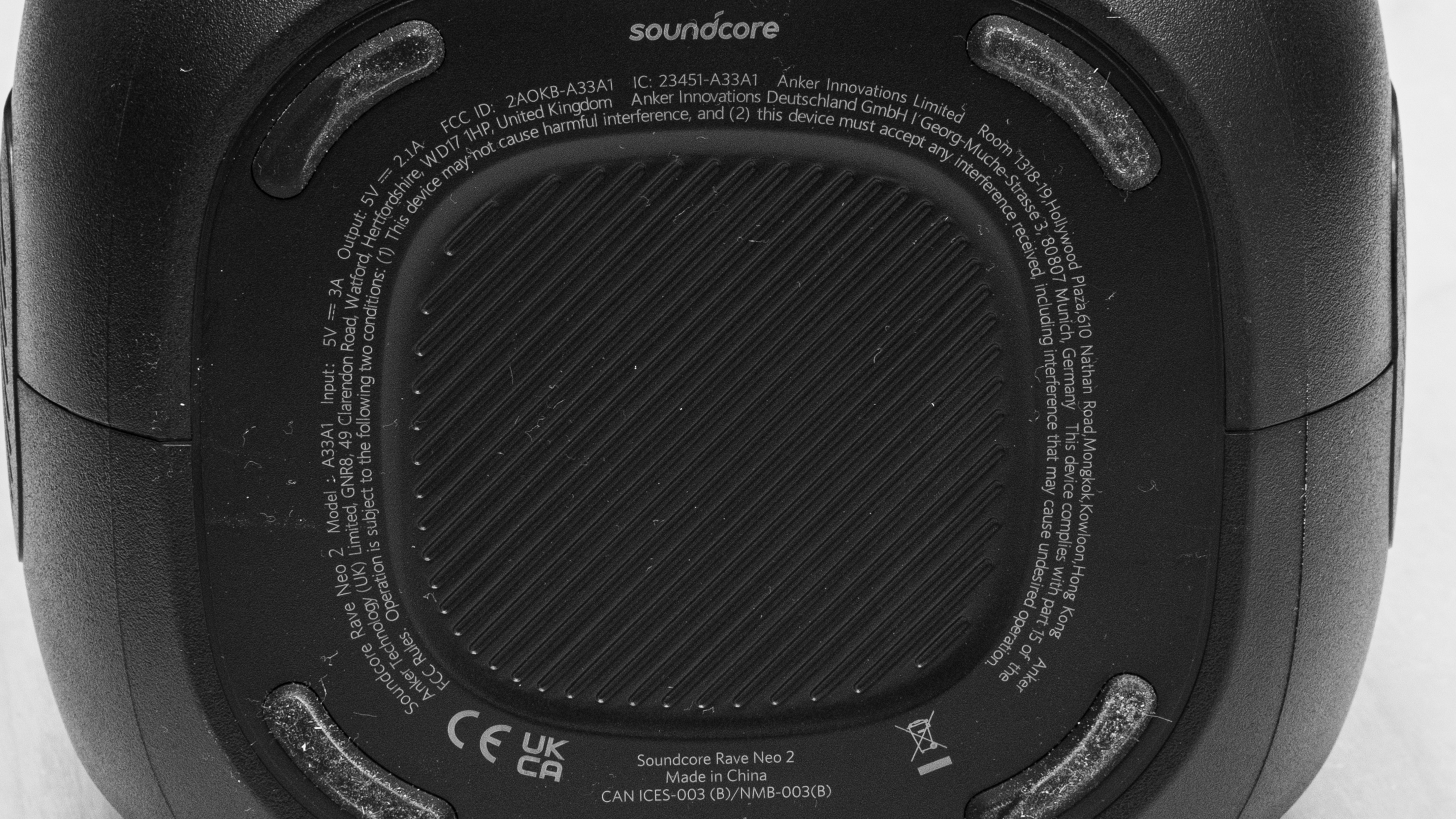 The Anker Rave Neo 2 is available in one color variant: 'Black'. You can see our unit's label here. You'll also see this speaker advertised as the Anker Rave Neo 2 SE, which is sold through Costco. Aside from the name, all the specifications seem identical between these two variants.
