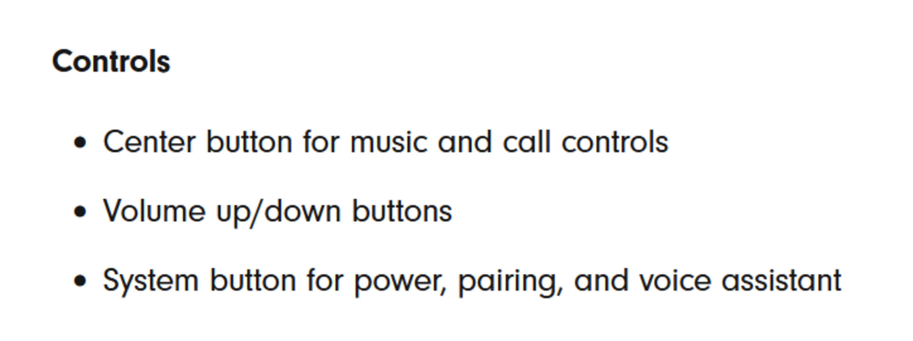 This speaker has very good controls. You can see quick overview of the controls here. All the buttons are nicely indented and feel tactile. There's also audio feedback for when you power the speaker on/off, as well as for pairing. Sadly, there's no audio feedback for when you hit max volume. The single LED on the top of the speaker also changes color according to the battery level, with green indicating there's more than 20% battery left and red indicating low battery.