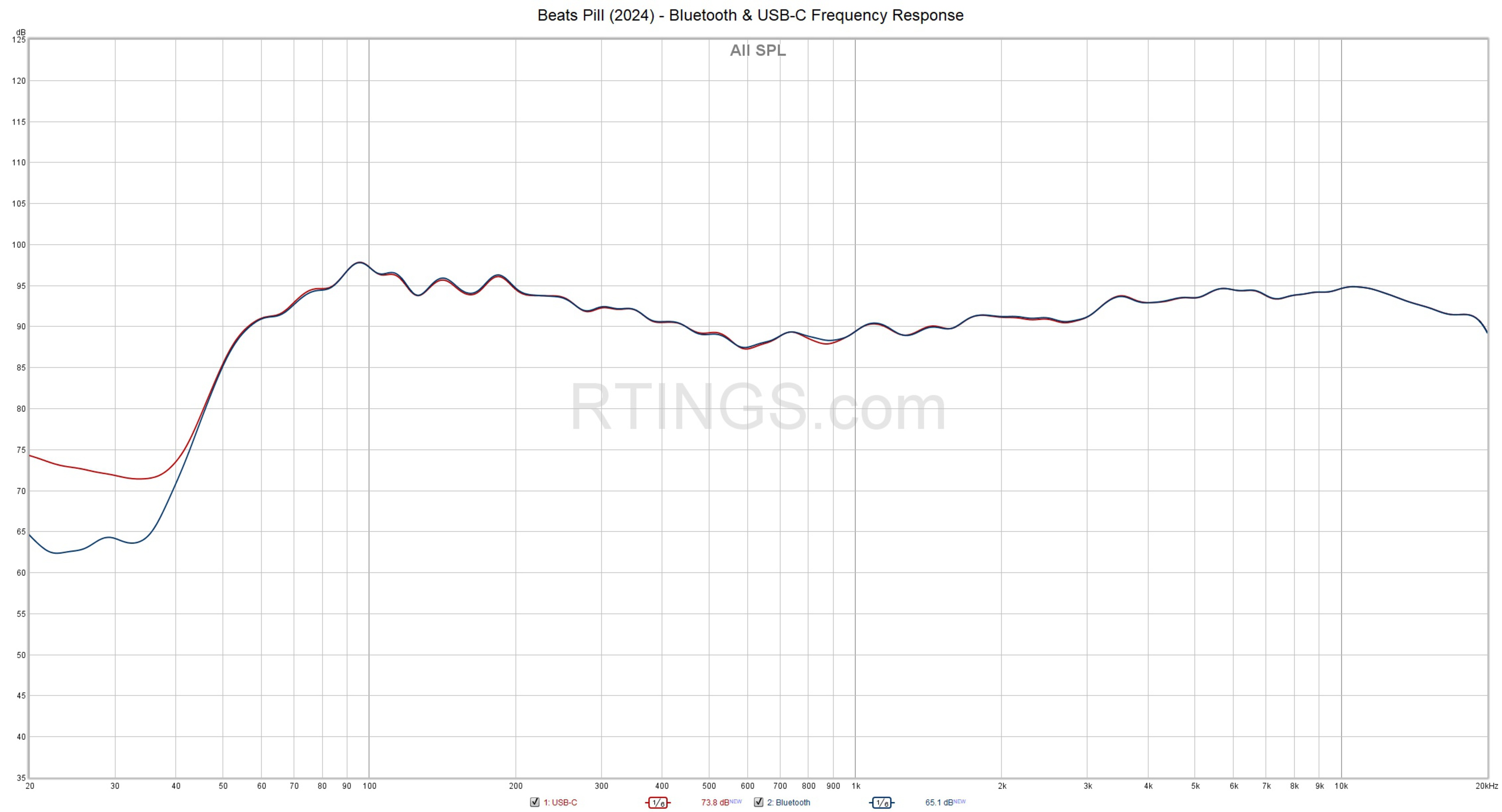 The Beats Pill 2024 is acceptable for music. Its default frequency response is more balanced than its predecessor, with smoother mids and better bass extension. The treble range is quite bright, though, and sibilants, like cymbals, can sound harsh at times. There's no EQ or presets in the app to tune the sound to your liking, either. While it can get reasonably loud, it's hardly enough to warrant noise complaints (despite what the marketing might indicate), and there's a decent amount of compression at max volume. It also can't playback stereo content without downmixing to mono, though you can pair another speaker for stereo playback. Its directivity isn't bad for a uni-directional speaker, too, so audio sounds consistent across different angles.