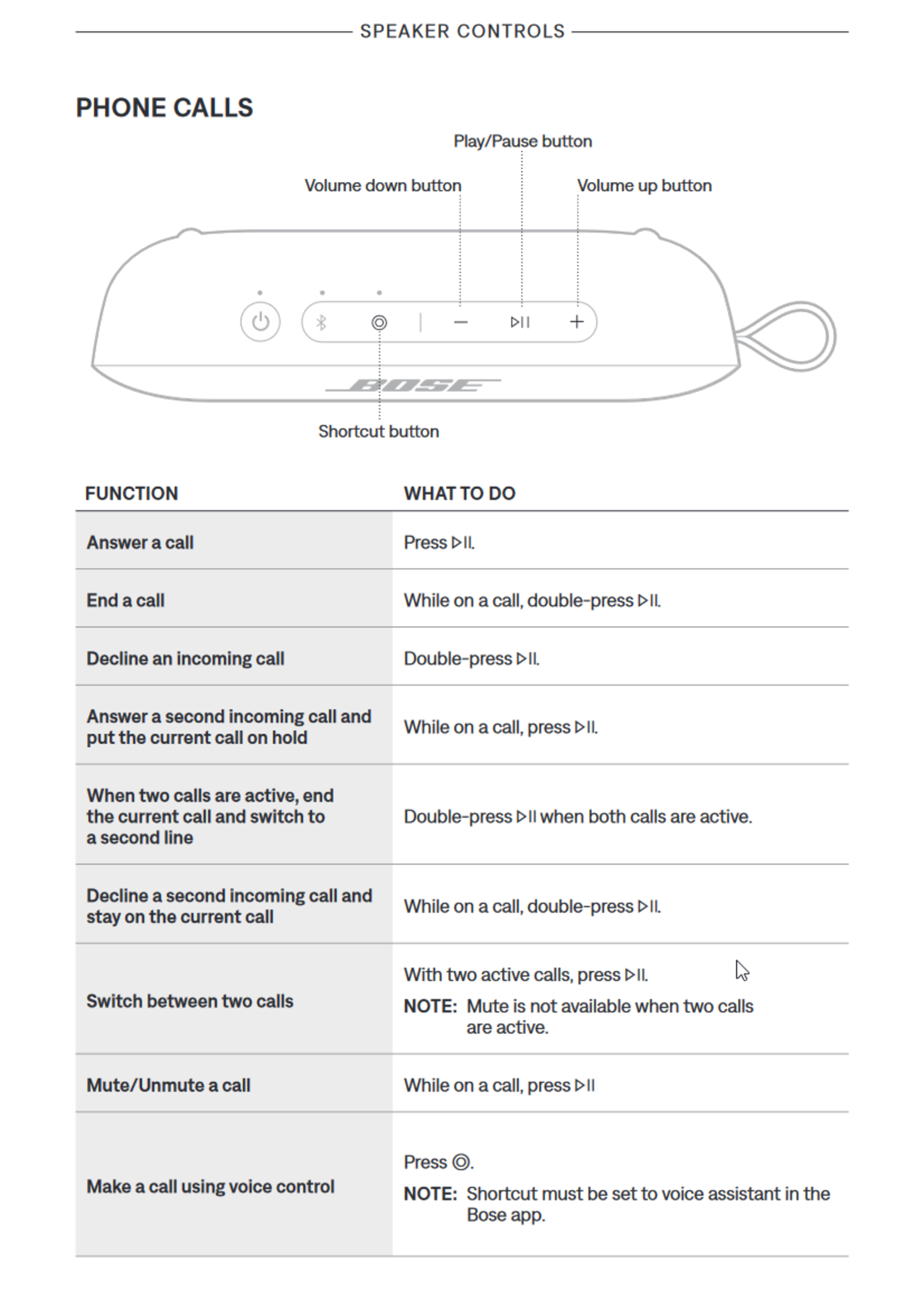 When you power the speaker on, it plays a chime and voice confirmation and updates you on the current battery life. Similarly, when you use the Shortcut button to connect to a new device, the speaker will play a chime and voice confirmation. Finally, there's a chime when you reach the minimum or maximum volume. There is also a status light above the Shortcut button.