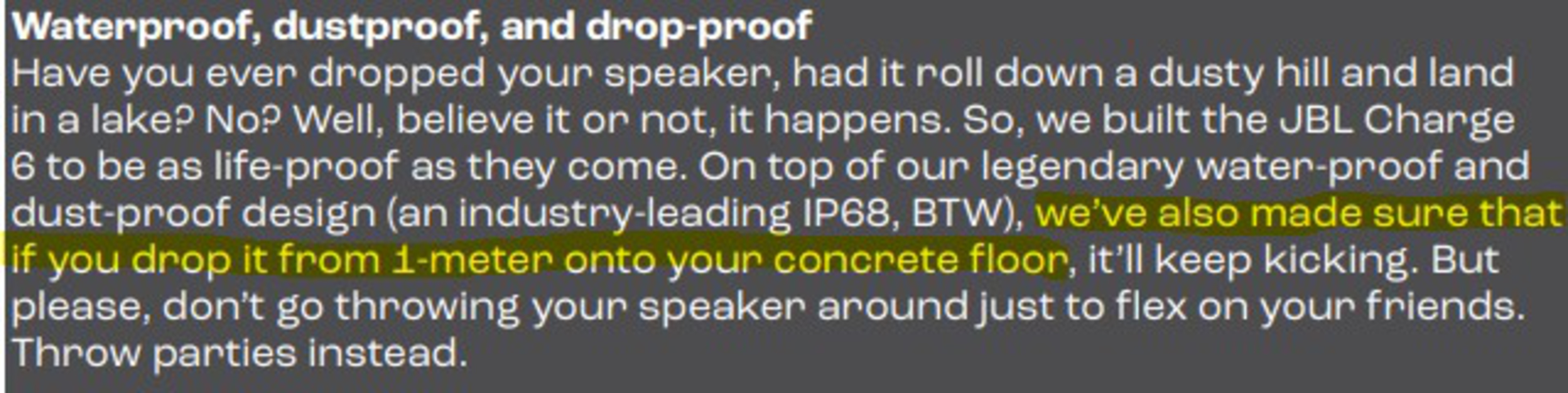 The JBL Charge 6 is very good for use outdoors. It's easy to carry, built to withstand dust and water with its IP68 rating, and has an excellent battery life of around 14 hours (or 19 hours with Playtime Boost activated). Since it's a small speaker, it doesn't get loud enough to fill a garden with sound, and it lacks low-bass rumble, but there's enough warmth to keep basslines feeling immersive, and it's not really intended to be a party-starter. Regardless, you can tweak its sound to your liking using the 7-band EQ in its companion app. Unfortunately, it downmixes stereo audio to mono (unless paired with another device), and audio in the treble range does sound different depending on your listening angle. However, with those small drawbacks aside, this speaker serves its intended purpose well.