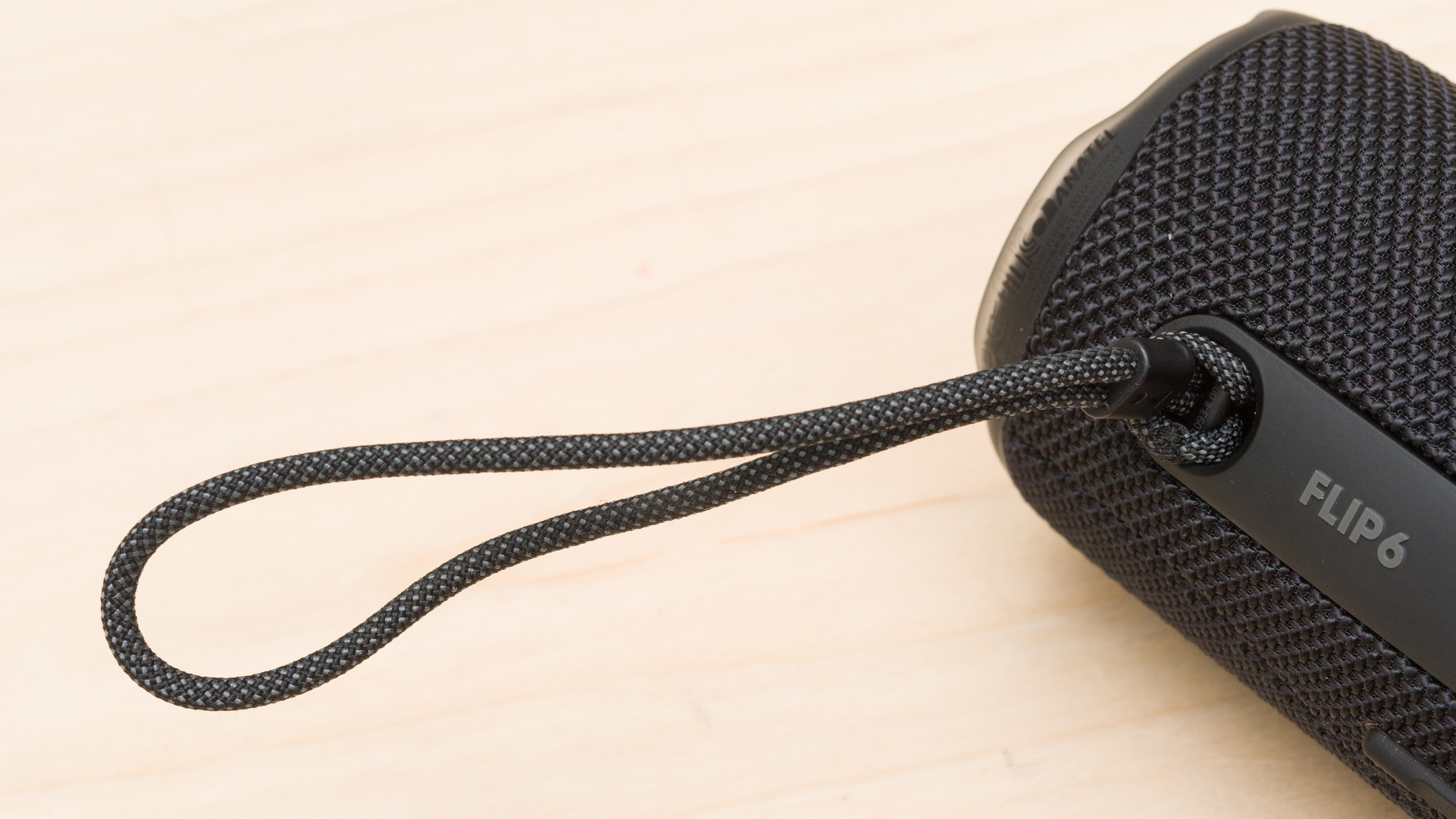 This speaker's build quality is great. It feels solid and is wrapped in a tight fabric that doesn't feel like it could easily rip. Its controls are rubberized, and there's hard protective rubber on the ends of the speaker surrounding its passive radiators. While there isn't a rubber flap to protect its USB-C charging port, it's still rated IP67 for dust and water resistance, meaning it's certified to be fully dust-tight and immersible in up to a meter of water for 30 minutes. It's even advertised to come with USB charging protection, which lets you know via an audible beep if you're too close to water, salt, or other chemicals. Also, like the JBL Charge 6, it comes with a carrying strap you can attach to its body.