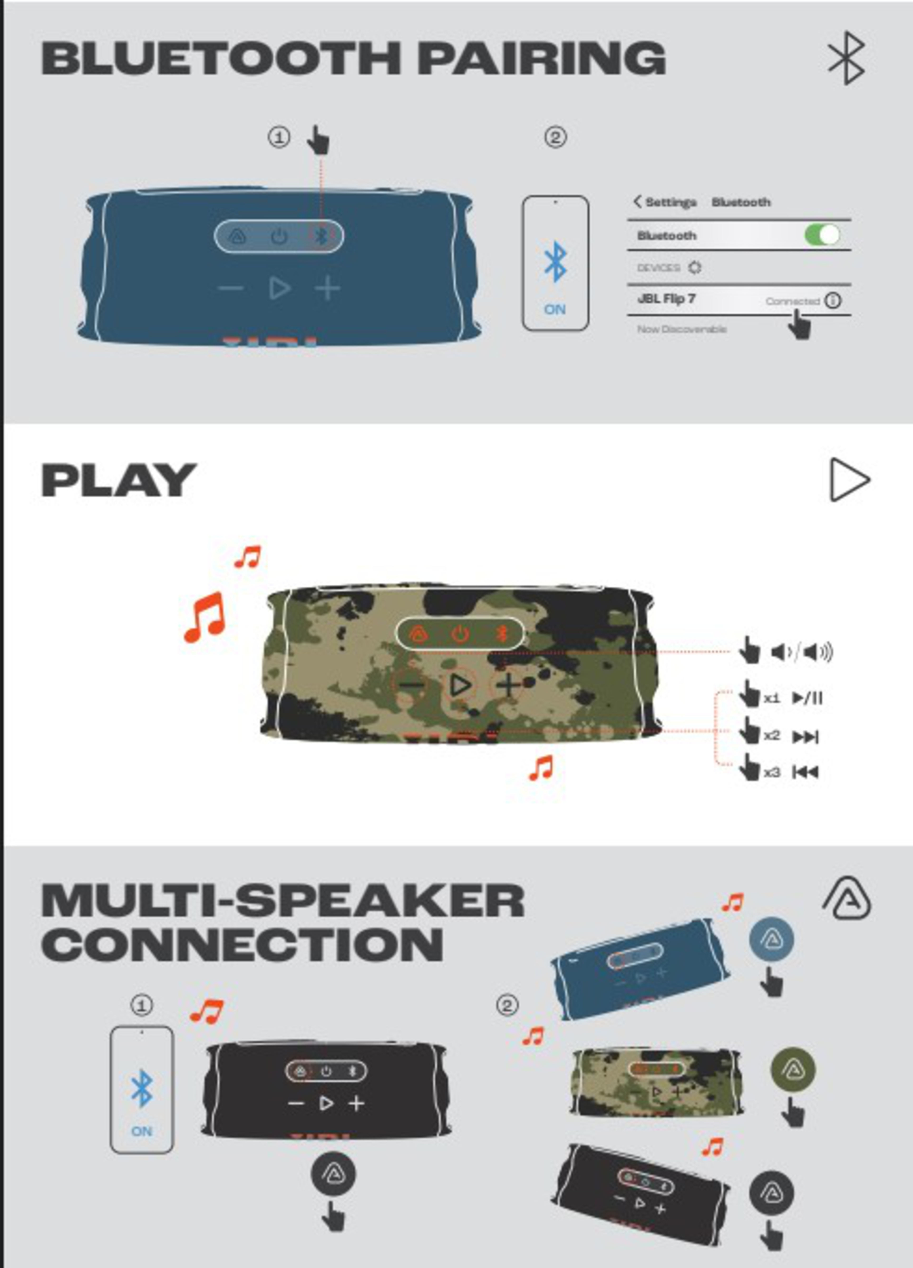 The JBL Flip 7 is not bad for music. While the bass output is limited by the size of the speaker, it still extends low enough to give your kicks some boominess. It's otherwise rather flat for clear melodies and bright harmonics. You can also adjust the EQ settings. That said, it's a mono speaker, so it necessarily downmixes your audio, though you can pair a second compatible JBL speaker for stereo. It also tends to compress in the lows, so if you listen at close to max volume, the bass sounds weaker.