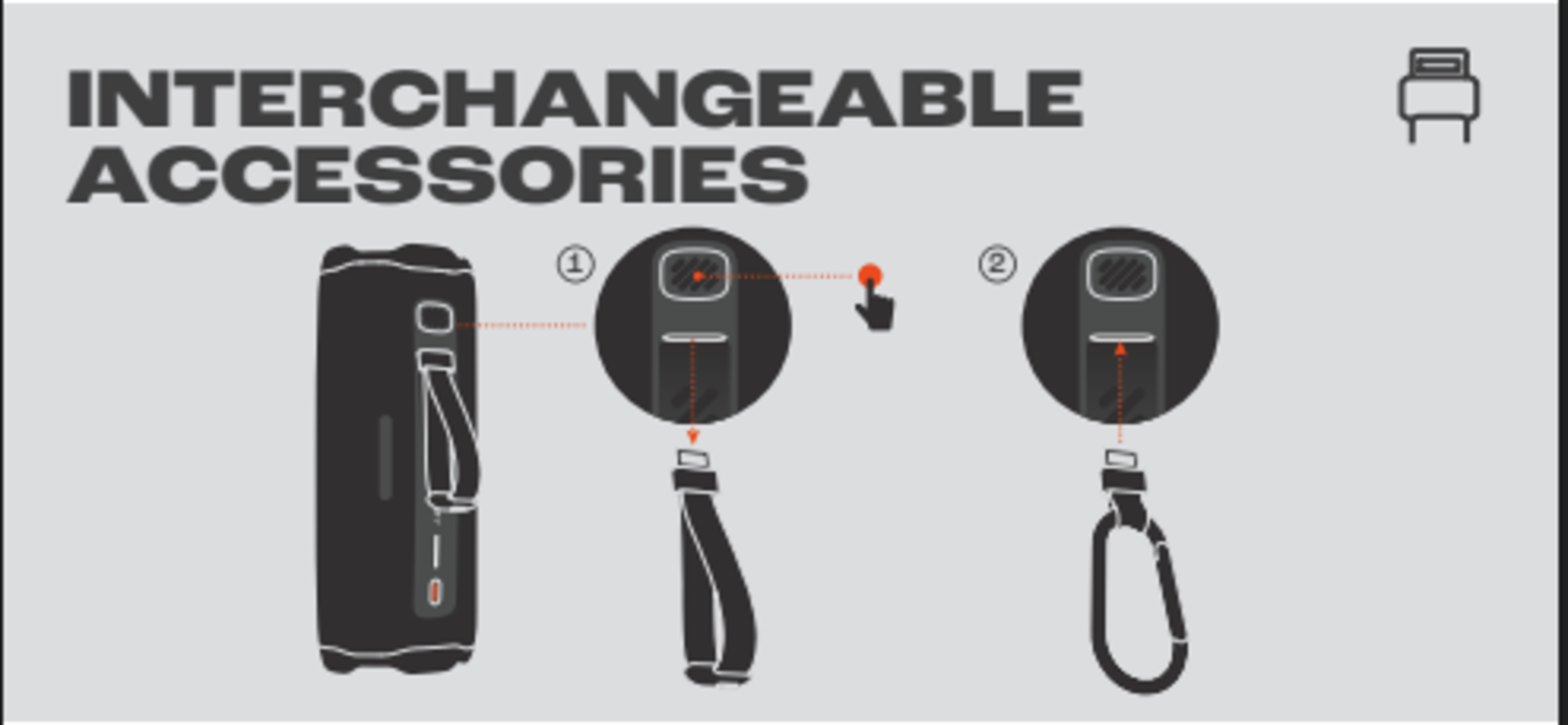 New to this generation is the brand's 'PushLock' design, which allows you to connect the included carabiner and loop strap by just plugging it into the speaker's designated slot and without fussing with threading a strap through a loop. Or, for a cleaner look, you can easily remove it when you're at home, and the speaker stays mostly in place. That said, if you lose the strap or carabiner, you'll need to get another, which may require contacting JBL.