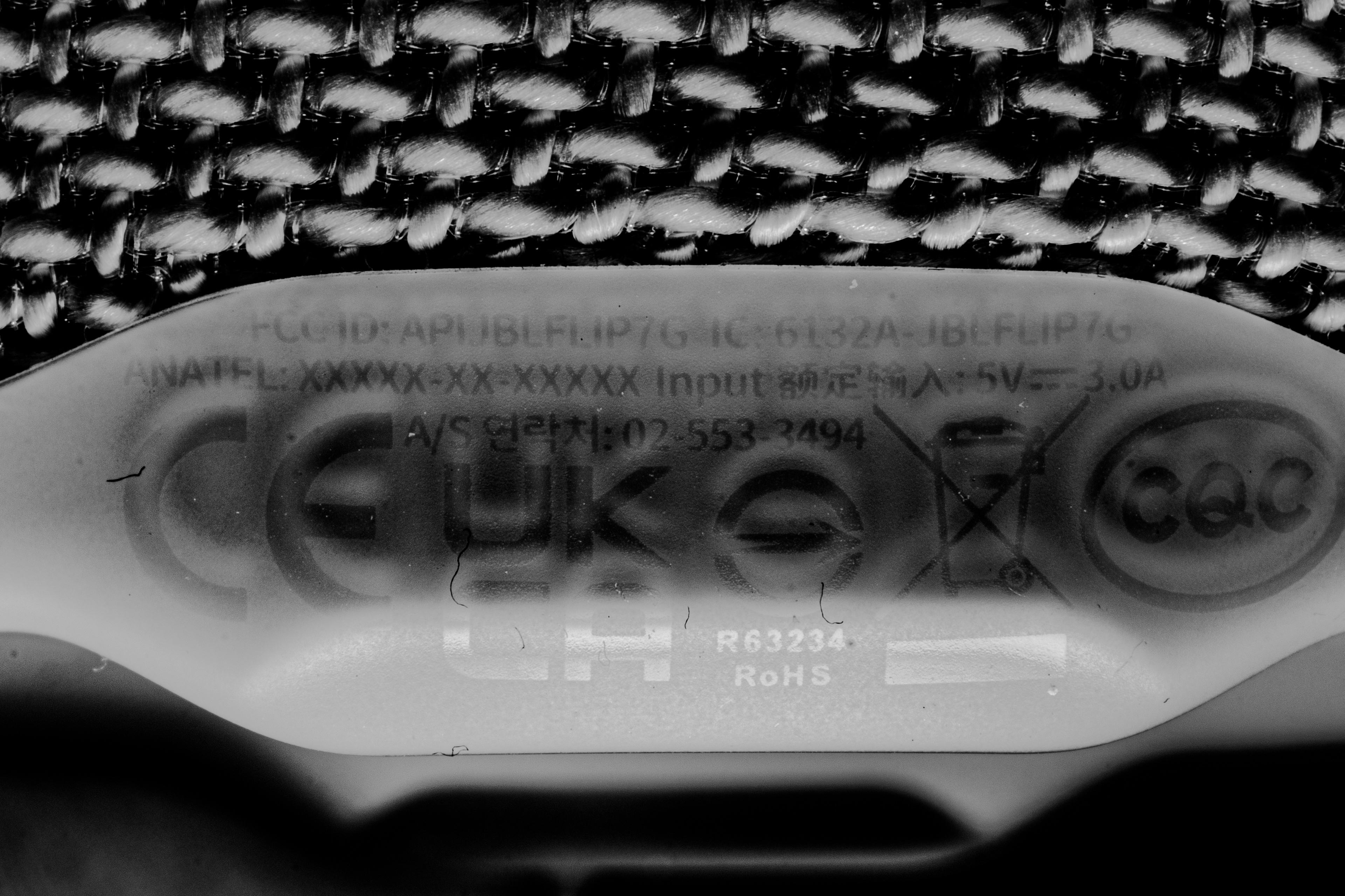 The JBL Flip 7 comes in several eye-catching colors, all of which we expect to perform the same. Our unit is 'White' (here's a photo of its label). You can also choose from 'Blue,' 'Red,' 'Black,' 'Squad,' 'Purple,' and 'Pink.'