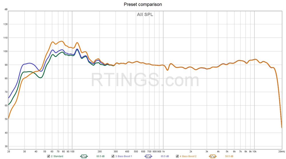 The JBL PartyBox 1000's frequency response accuracy is great. Out-of-the-box, it offers a pretty even, balanced sound suitable for many different music genres. Voices and lead instruments are reproduced with clarity, and there's plenty of thump and rumble in the bass for more bass-centric genres like EDM. Note that we tested the speaker with its Bass Boost EQ set to 1. You can see a comparison of the frequency response with its Default EQ and its Bass Boost EQ set to 2 at the link here. As expected, Bass Boost 2 brings more punch to the mix.