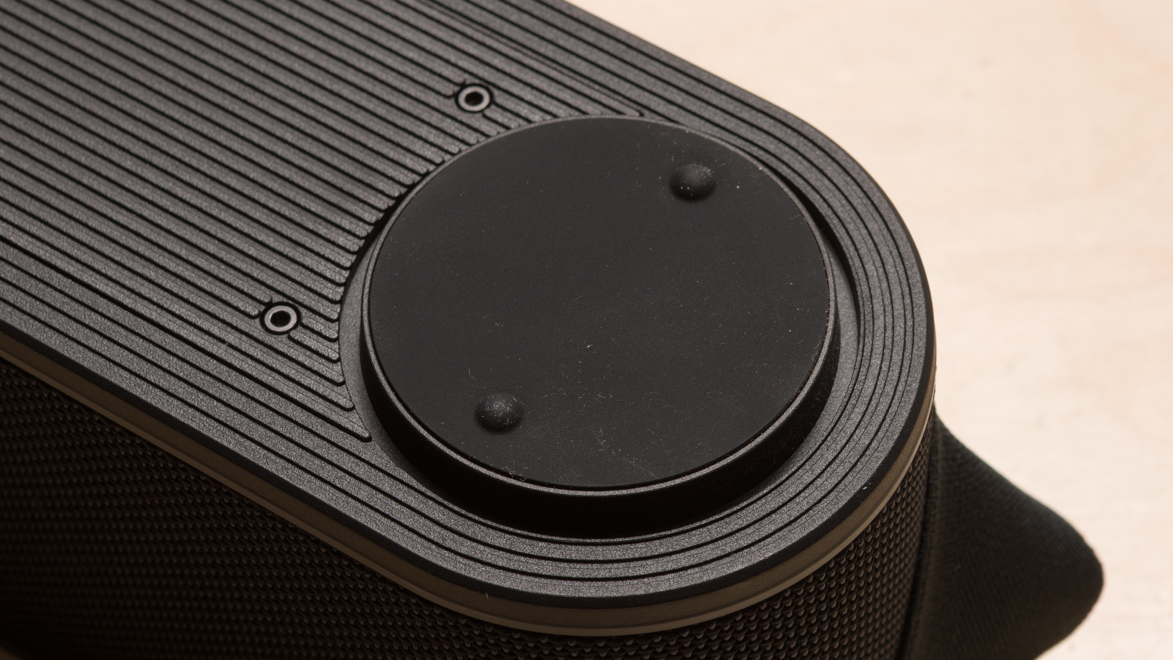 The LG xboom Bounce is outstandingly well-built. It's made from a hard, durable plastic, wrapped in a woven mesh material. It's rated IP67, so it's dust-proof and submergible in water. The manufacturer even claims that it passes seven MIL-STD-810H tests for exposure to very harsh environmental conditions. Two rubber feet on the underside give it some stability, and the swappable battery is housed in its own compartment, so you'll need a screwdriver to access it. Perhaps the only weak point in the speaker's construction is the carrying strap, which seems like it could lose its elasticity over time.