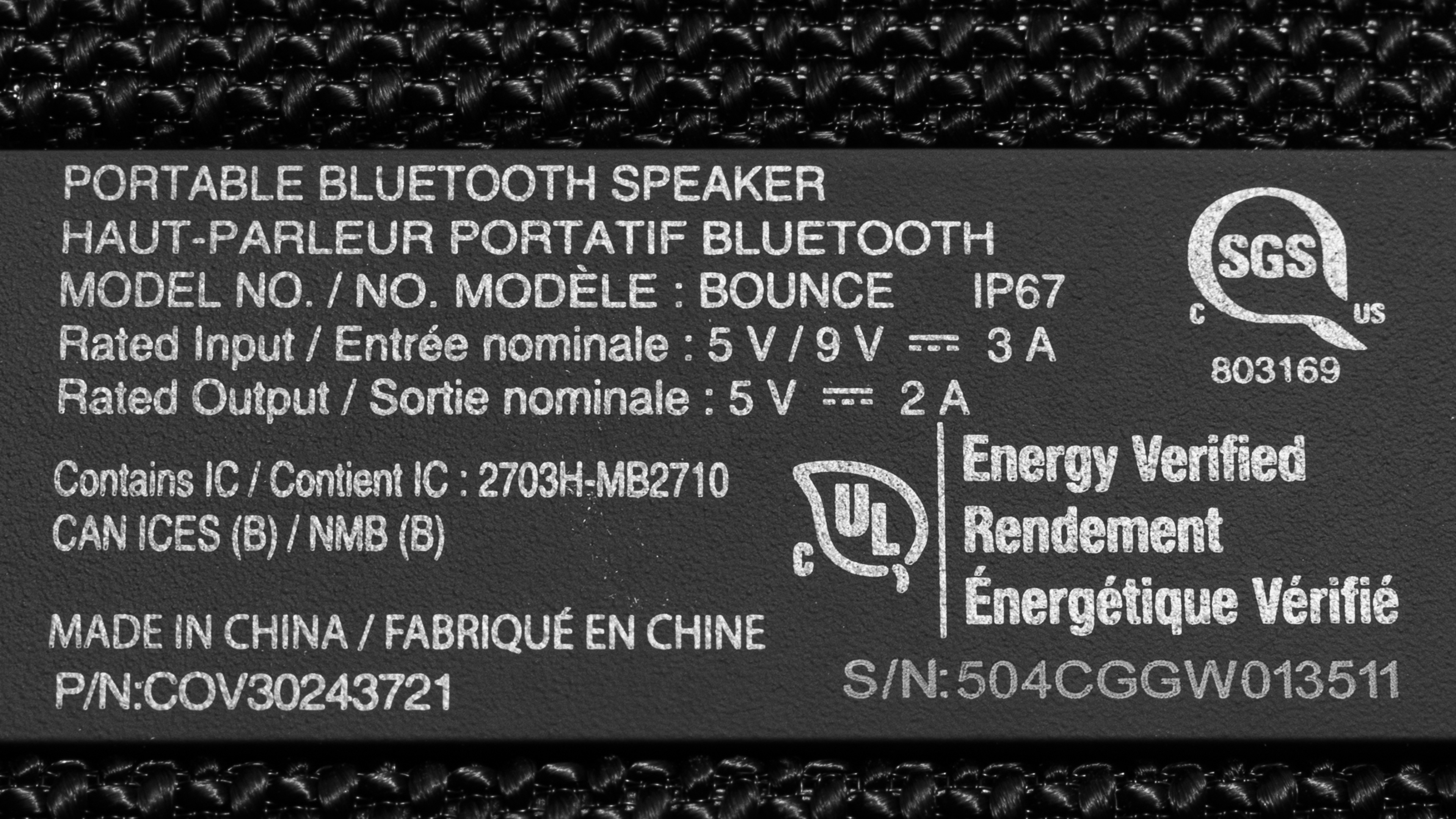 The LG xboom Bounce comes in just one color variant: 'Black,' and here's a picture of its label. If you encounter another variant of this speaker, please let us know in the comments, and we'll update our review.