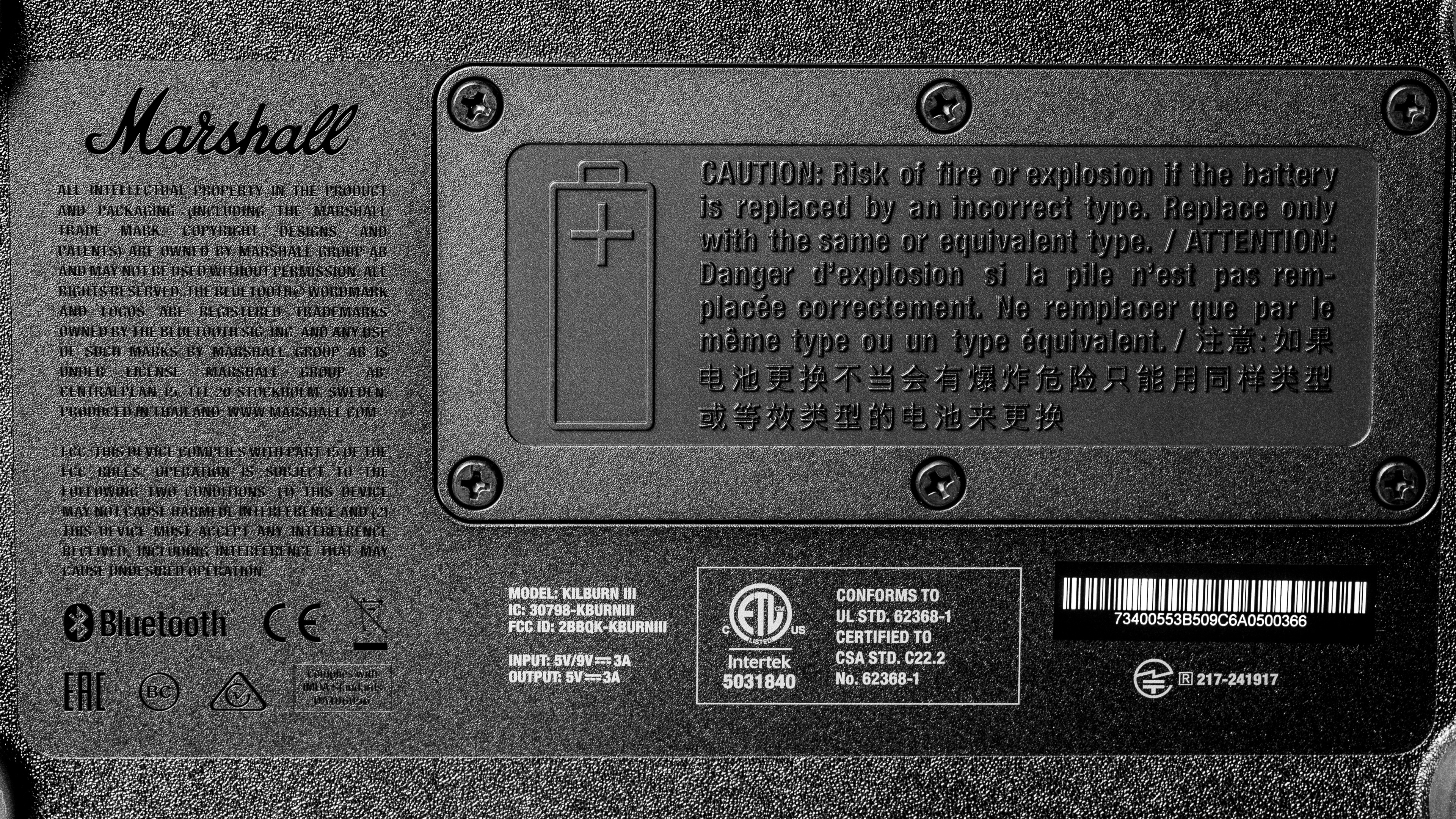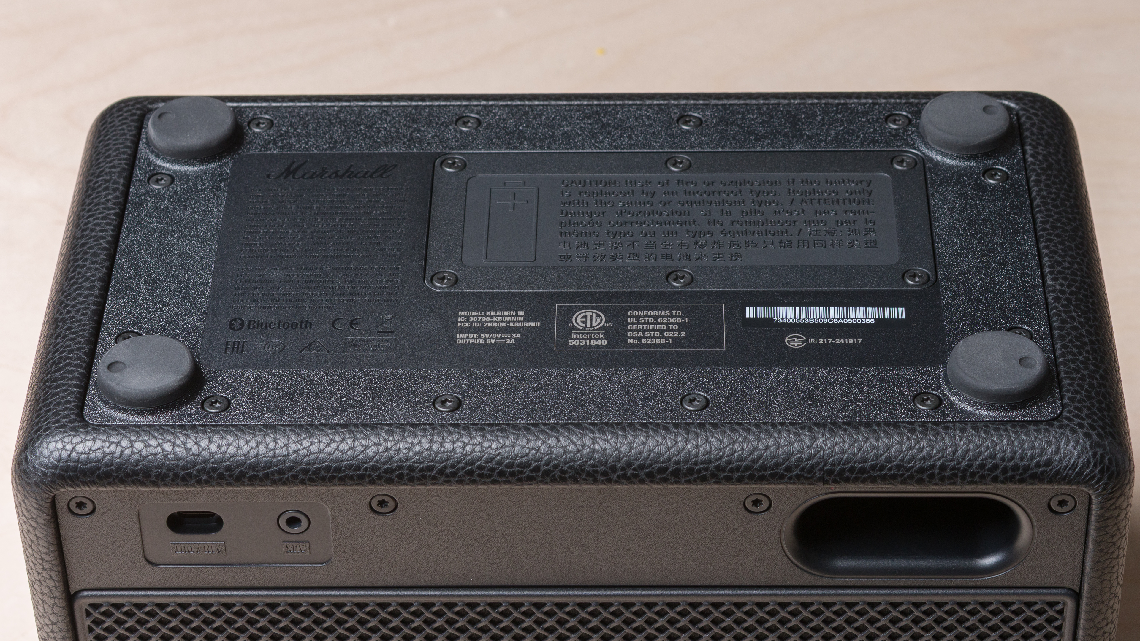The Marshall Kilburn III comes in two different color variants: 'Black and Brass' and 'Cream' (here's a picture of its label). We tested the 'Black and Brass' variant, but expect other color variants to perform similarly. If you encounter another variant of this speaker, please let us know in the comments.