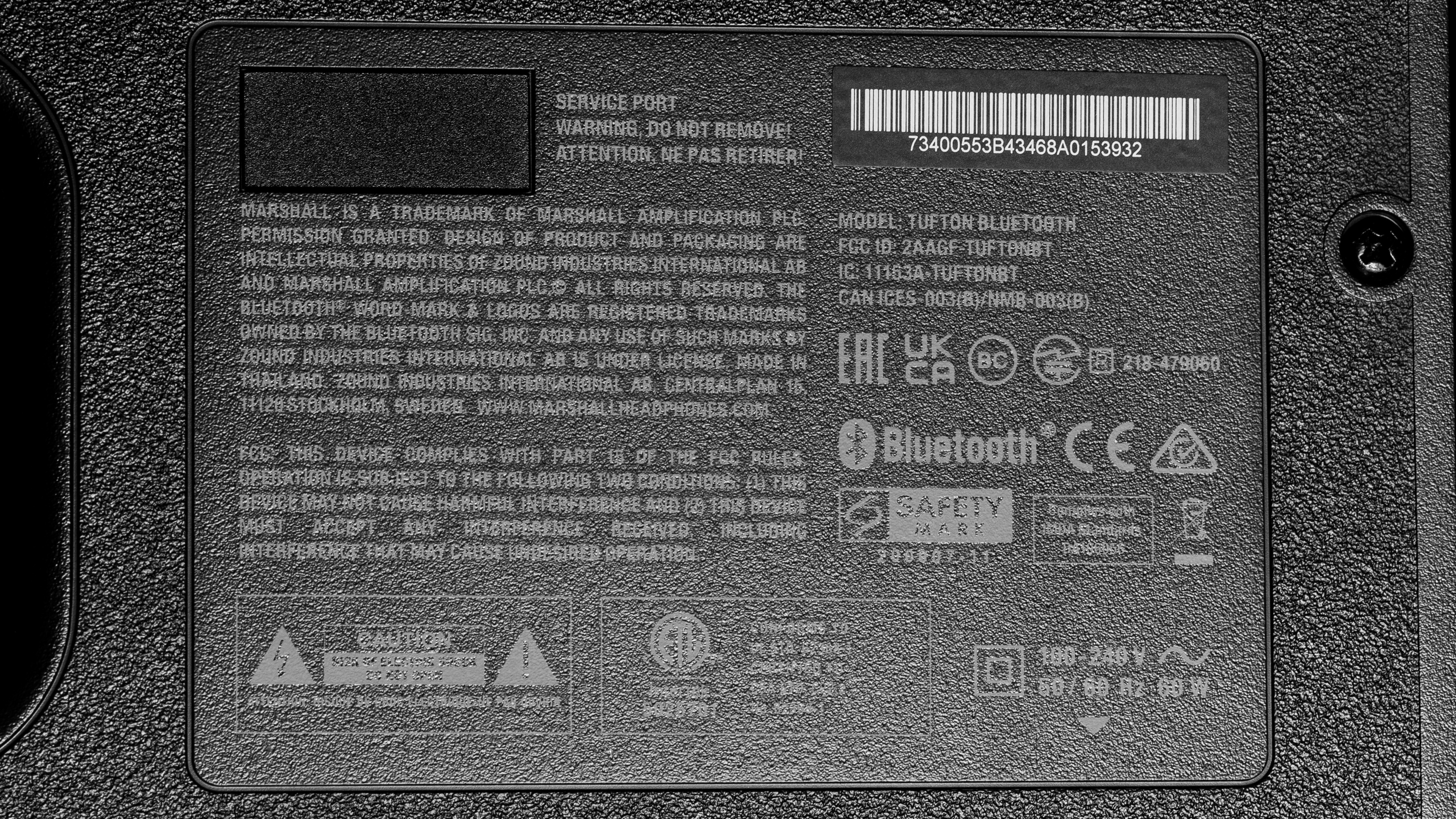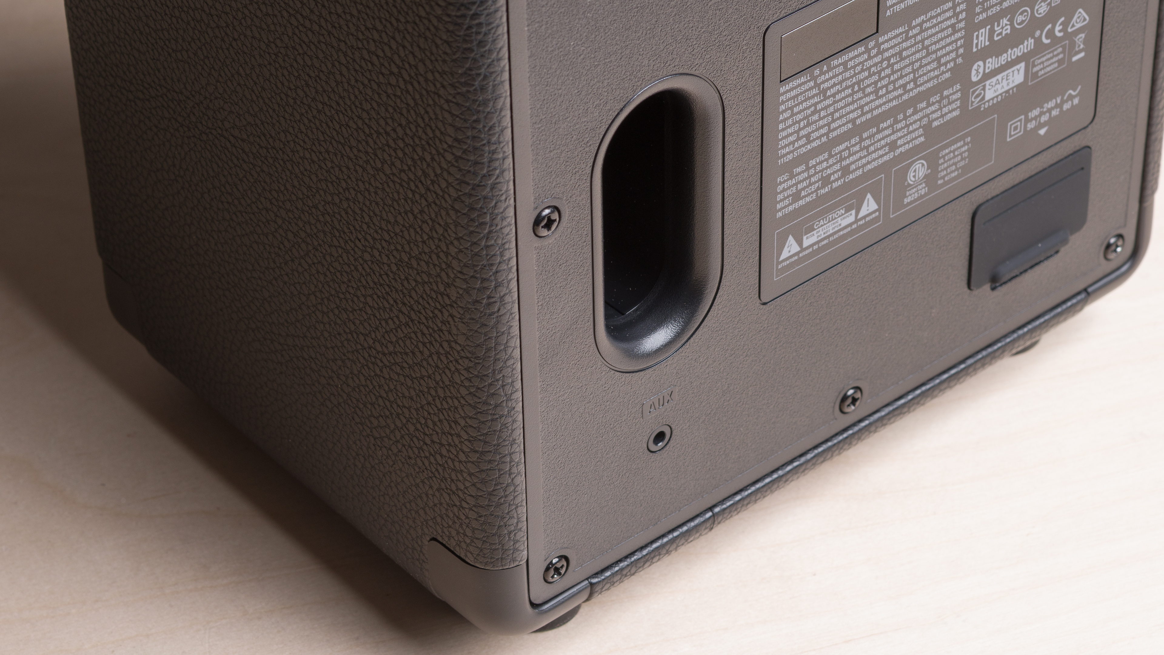 The Marshall Tufton is unremarkable for watching movies and videos. Its boosted bass range means that sound effects during fast-paced action scenes will sound exciting and realistic, but the recessed mid-range will make dialogue harder to follow and understand. The speaker gets loud enough to fill a living room with sound, but there's some compression at max volume, which results in a lack of clarity as you turn it up. With low Bluetooth latency when connected to Android or iOS devices, you won't notice lip-syncing issues when watching on a paired device. For even lower latency, you can also connect to the AUX In port on the speaker's back.