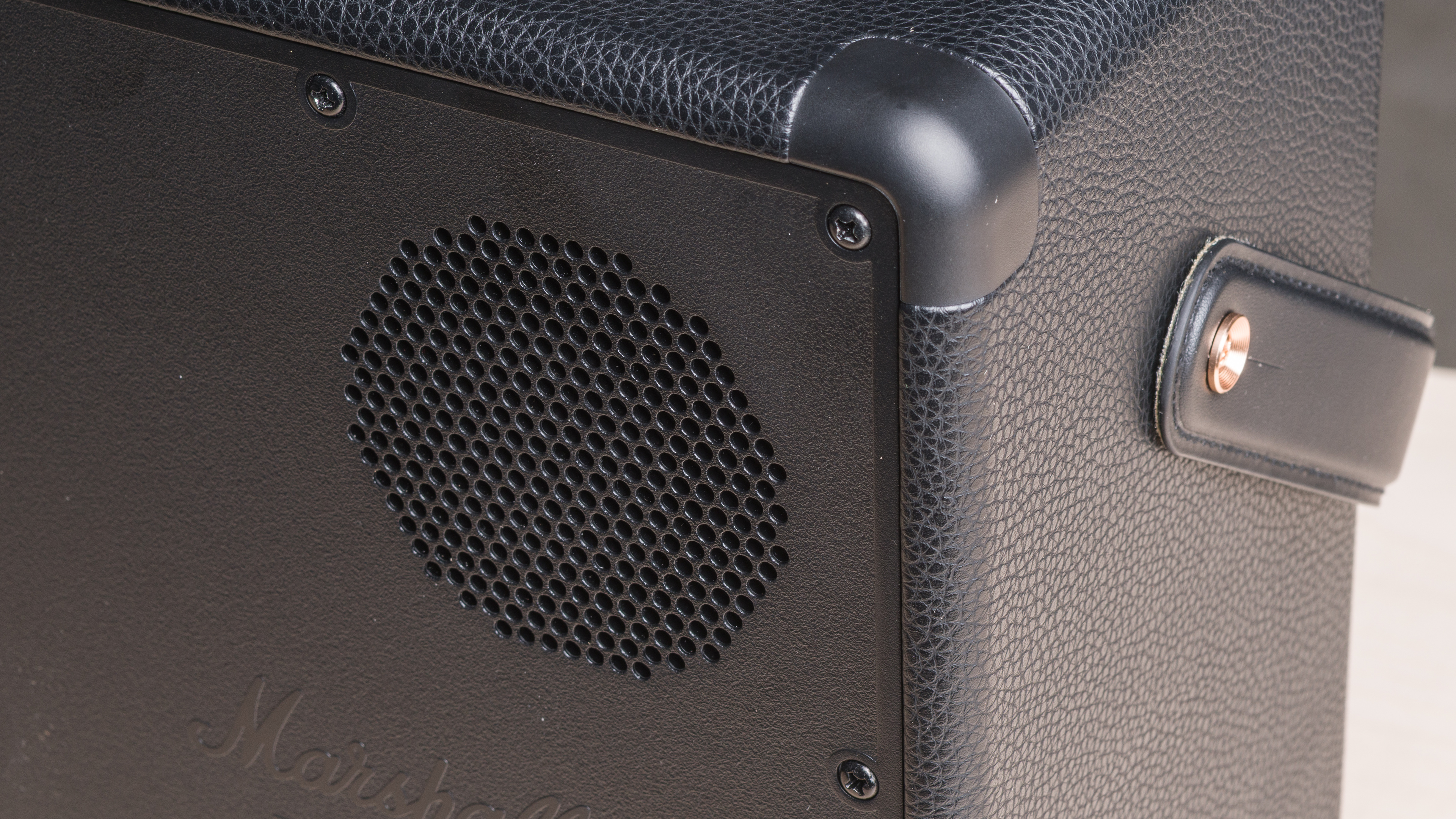 The Marshall Tufton has a very good soundstage. It can play stereo content without downmixing to mono, so you'll notice some separation between the left and right channels. That said, the drivers are very close together, so the effect is relatively subtle. While it doesn't have a 360-degree design, the rear-facing speaker does a decent job of minimizing directivity; however, you'll still notice some changes in the way audio sounds as you move around the speaker.