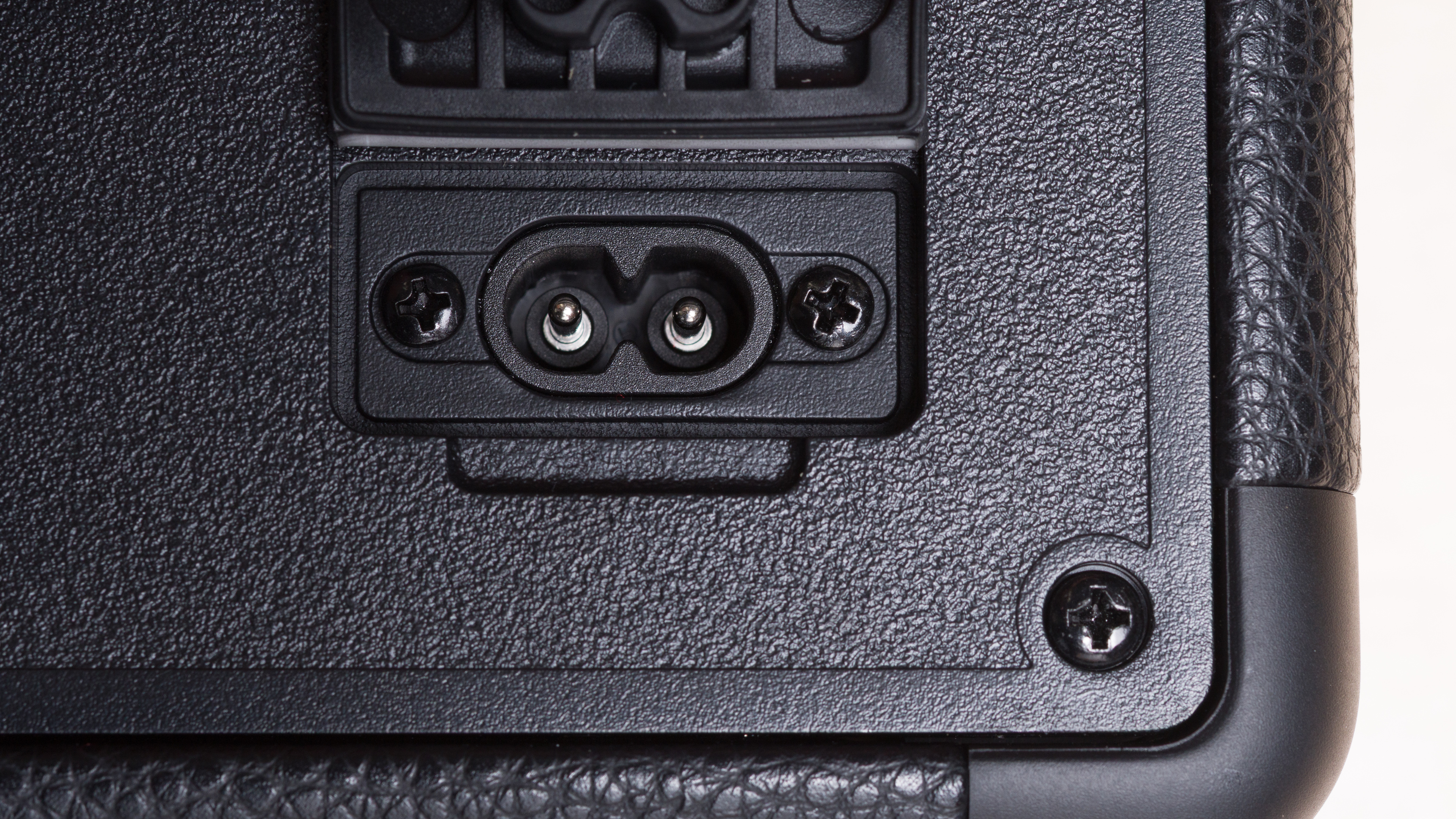 This speaker has a decent build quality. Its body, which is primarily made of plastic, sits on four rubber feet. While it's not rated for impact resistance, hard plastic corner guards help protect it against bumps. That said, the mesh metal grille in front has some give where the drivers are located, so avoid impacts to this area. The rear panel is securely attached with screws and features a bass port as well as a vent for the rear speaker. An IPX2 rating for water resistance means it can handle light rain, and a rubber flap covering the AC input adds additional protection against the elements. However, this speaker isn't meant to join you poolside, and it's not the best choice for a day at the beach. If you're looking for something dust-tight and submersible, check out the Marshall Middleton.