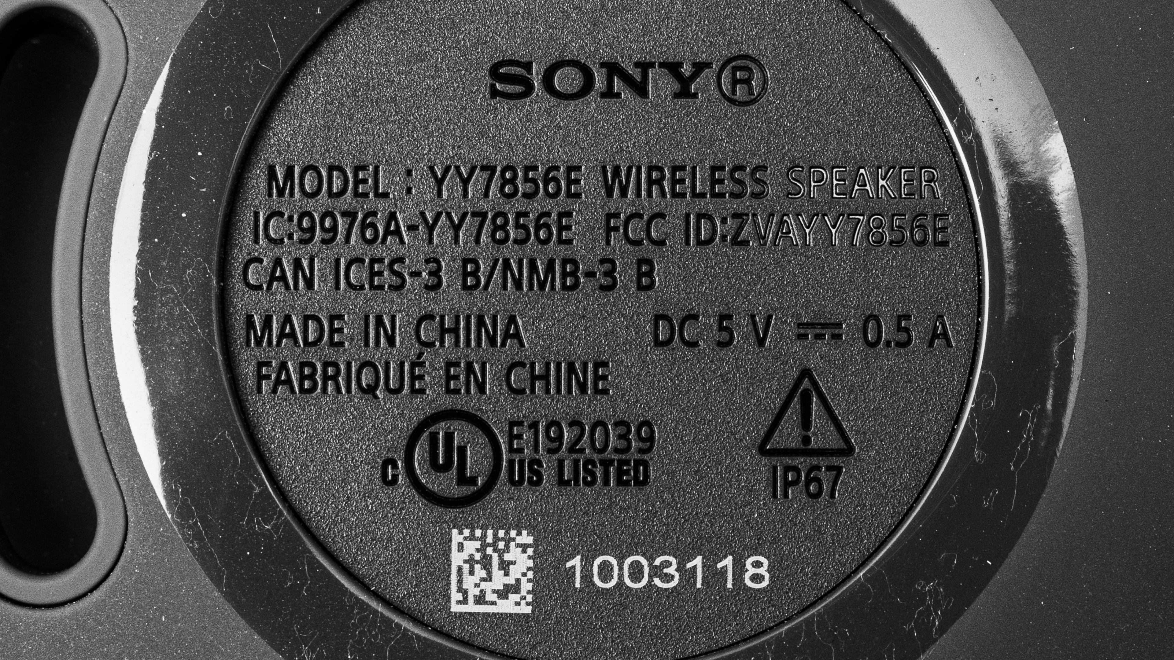 The Sony SRS-XB100 is available in many colors, including Black, Blue, Light Gray, and Orange. We tested the Black variant but expect the other colors to perform similarly. You can even see the label for our model here.