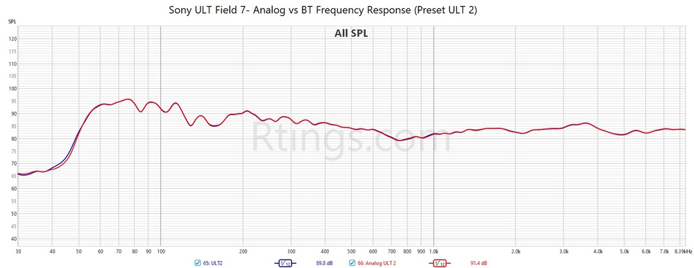 The Sony ULT FIELD 7 and the JBL PartyBox 110 are similarly loud speakers that are equipped with party-centric features, like RGB lights and mic/guitar inputs for karaoke. That said, the Sony is much more portable and features an IP67 rating, so it can be submerged in water, whereas, the JBL is only IPX4 rated for water resistance. If portability and build quality aren't big factors and you mainly plan on using it at home, the JBL will be a better choice, though. It features a similarly bass-heavy frequency response while still retaining clarity in the mids and highs. Its max volume is similar to the Sony too, but there's significantly less compression. It also has a slightly longer battery life and better directivity. Those who plan on pairing their speaker to soundtrack movies and videos might be swayed by the Sony's lower latency with iOS and Android devices, though, which results in a more lag-free listening experience.