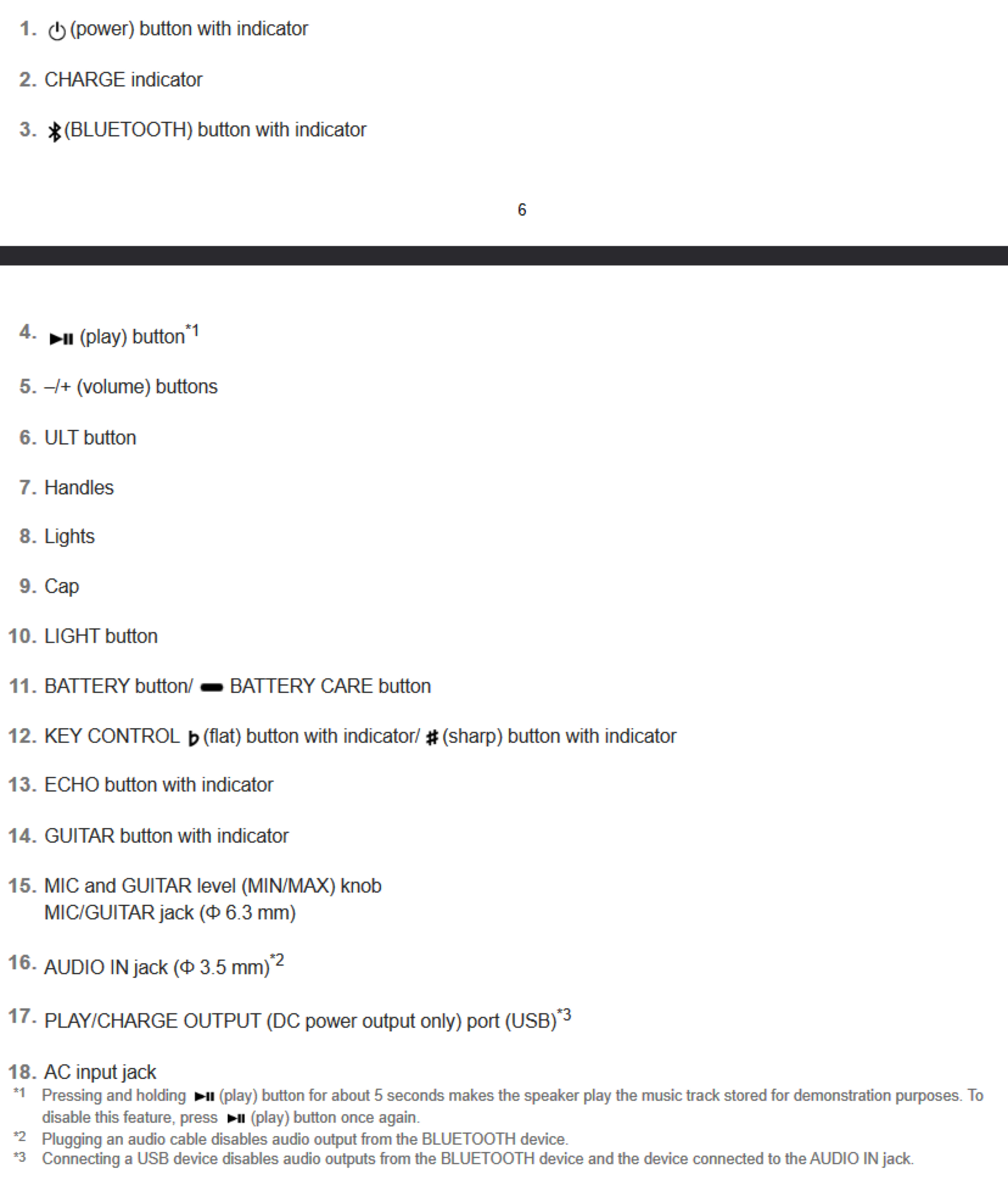 The Sony ULT FIELD 7 has a decent control scheme that lets you alter a few functions on the fly. You can see an overview of the controls here along with the parameters they adjust. The buttons themselves are rubberized and easy to press. In addition to basic playback and pairing controls, this speaker also has a few features geared specifically towards karaoke, including key control, echo, and a button to switch the sensitivity of the guitar/mic input. There's also the trademark 'ULT' button that activates two additional stages of bass enhancement.