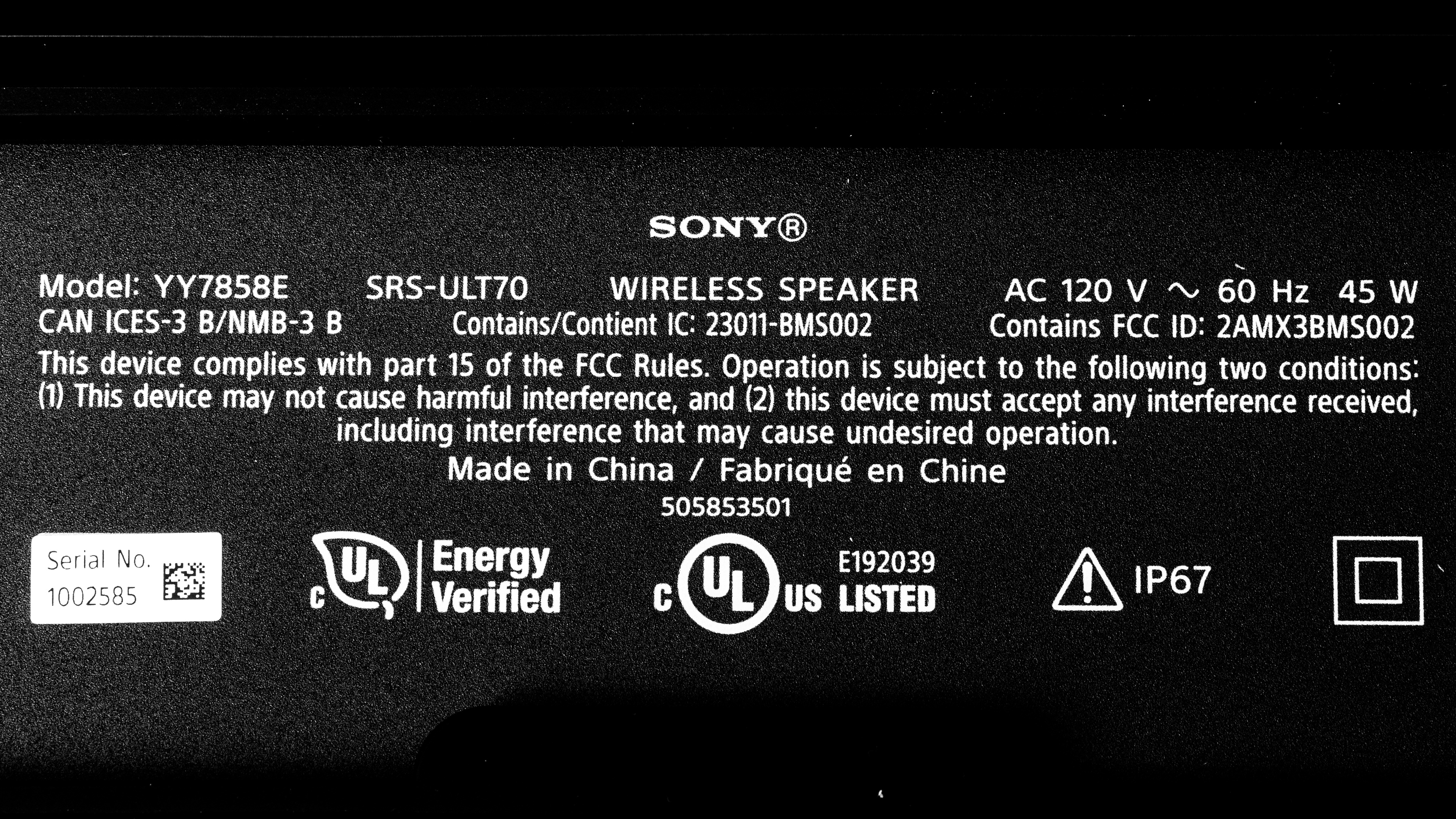 The Sony ULT FIELD 7 is available in one color variant: 'Black.' You can see our unit's label here.