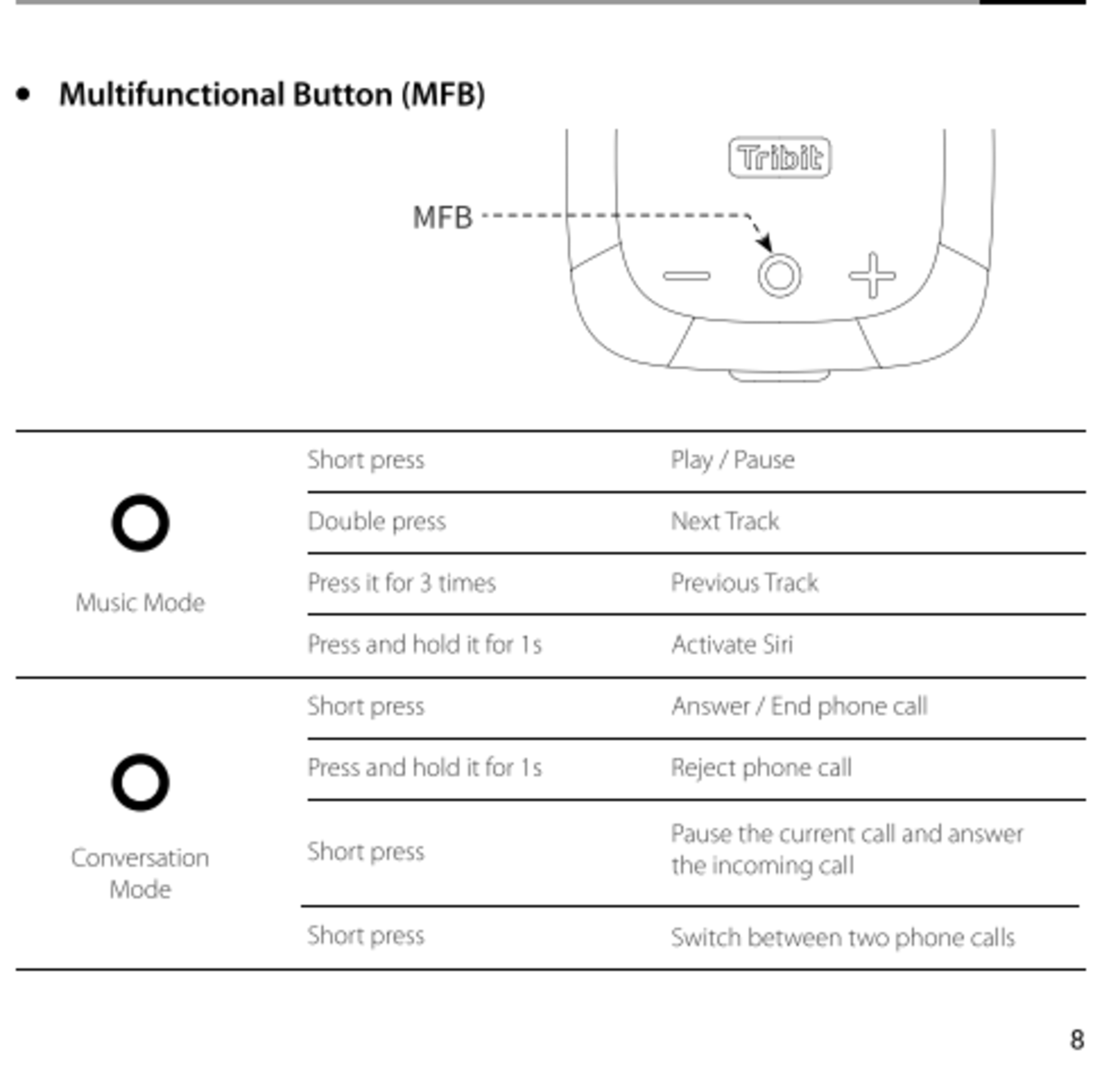 The Tribit Micro 2 has very good controls. There are three physical controls on the front of the unit, all of which produce a satisfying click, making them easy to access and use. Unsurprisingly, the plus and minus buttons control the volume while the circular central button serves several purposes. You press it once to play or pause audio, twice to skip forward, and thrice to skip backward. Pressing and holding it will activate voice assistant mode. Finally, a short press accepts a call, and a long press rejects a call. You can see the rest of the controls in the manual.