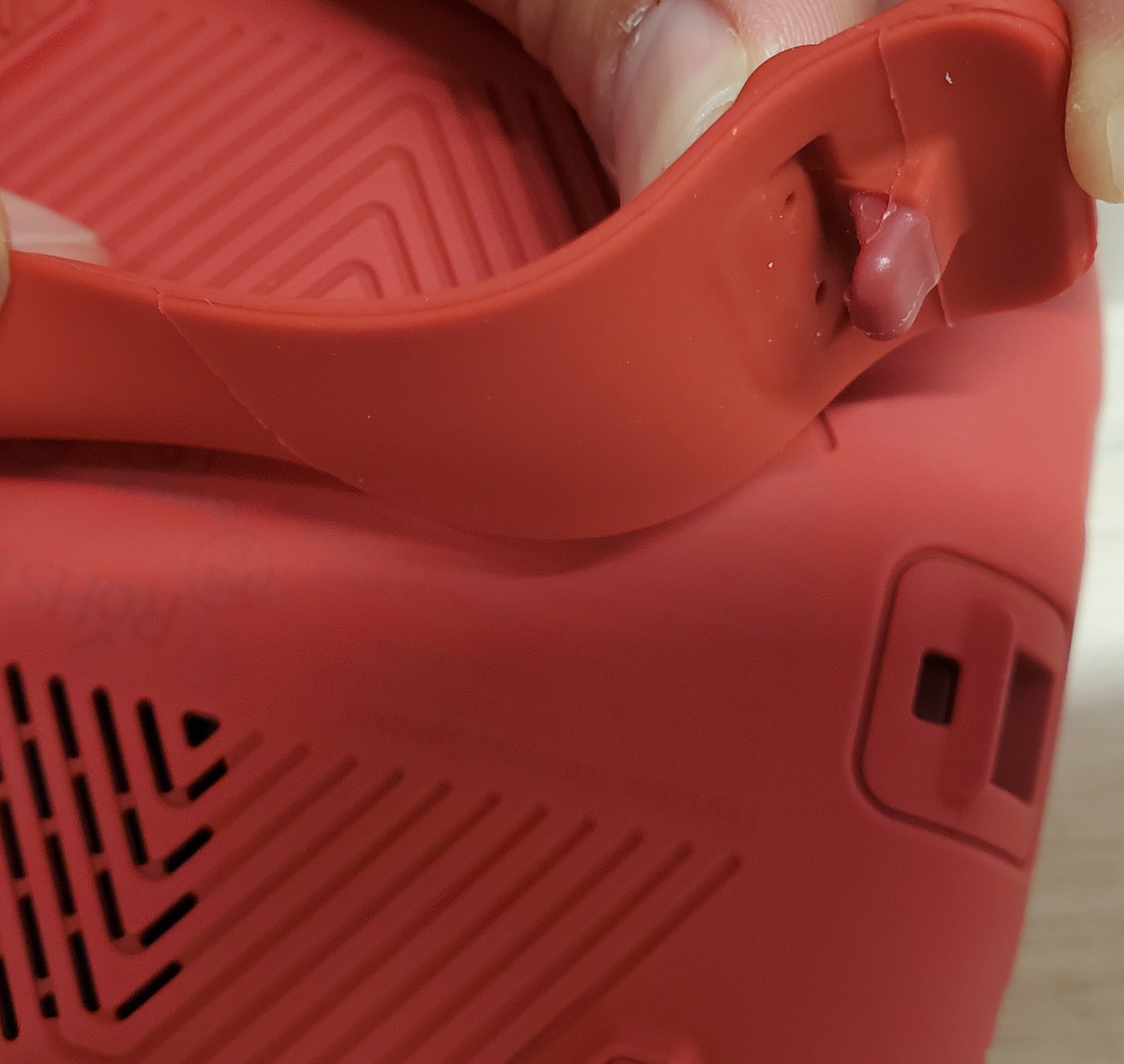 There's a silicone strap on the back, which you can use to attach the speaker to bike handles or to position the speaker vertically. The strap unhooks on one side via a small nub and feels unlikely to break. If there's an obvious weak point, it's the lack of a cover on the USB-C charging port. That said, the speaker's IP67 rating means that it shouldn't be an issue, but it's worth noting.