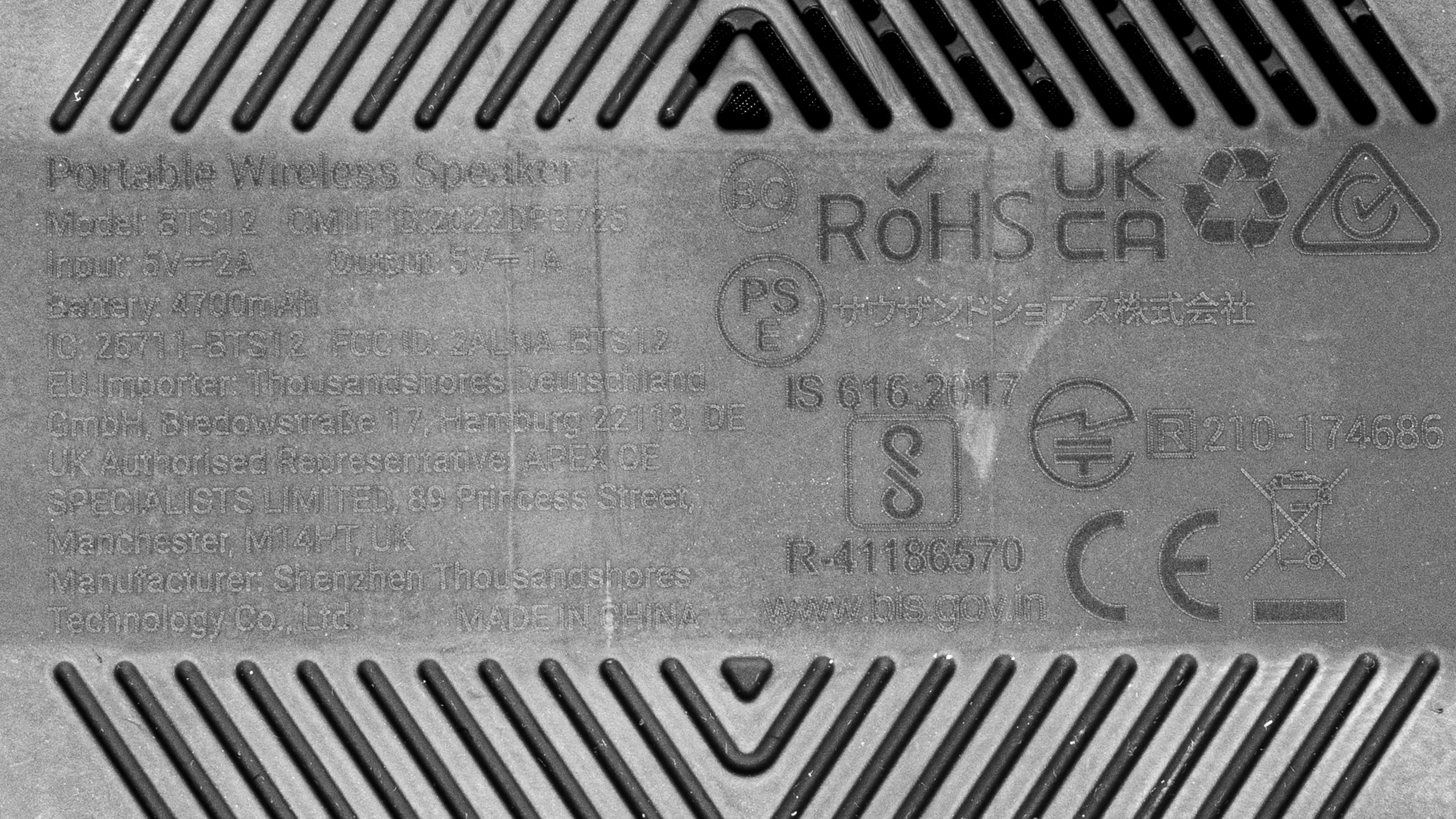 The Tribit Stormbox Micro 2 comes in three color variants: 'Black,' 'Blue,' and 'Red.' We tested the 'Red' variant, and you can view its label.